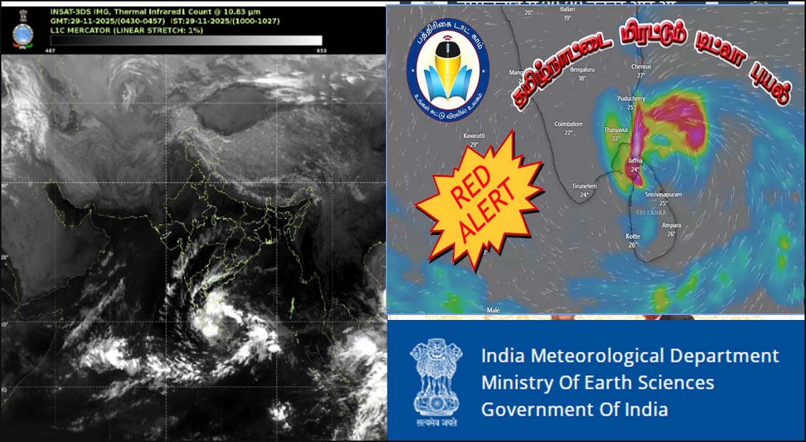 சென்னை: வங்கக்கடலில் நிலைகொண்டுள்ள டிட்வா புயல் 7 கி.மீ. வேகத்தில் தமிழகம் நோக்கி நகர்ந்து வருவதாகவும், நாளை கரையை கடக்கும் என வானிலை ஆய்வு மையம் தெரிவித்துள்ளது. டிட்வா புயல் காரணமாக, தமிழ்நாடு மற்றும் புதுச்சேரியின் கடலோர மாவட்டங்களில் கனமழை நீடித்து வரும் நிலையில், முன்னெச்சரிக்கை நடவடிக்கைகள் தீவிரப்படுத்தப் பட்டுள்ளது. மக்கள் வெளியே வர வேண்டாம் என எச்சரிக்கை விடுக்கப்பட்டு உள்ளது. தமிழ்நாட்டை மிரட்டி வரும் டிட்வா புயல் சென்னைக்கு தெற்கே 430 கி.மீ. தொலைவில் டிட்வா … Read more
