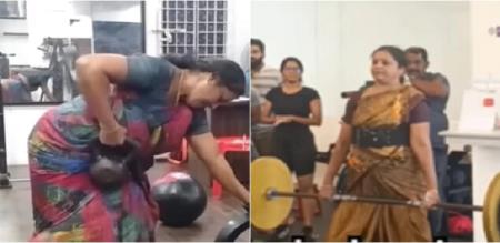 சென்னையில் வசித்து வருகின்ற 56 வயது பெண்மணி ஜிம்மில் புடவையை கட்டிக்கொண்டு உடற்பயிற்சி செய்கின்ற ஒரு வீடியோ சமூகவலைதளத்தில் வைரலாகி வருகிறது.
