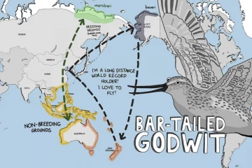பார்-டெயில் காட்விட் பறவை (bar-tailed Godwit) ஒன்று அலாஸ்காவிலிருந்து அவுஸ்திரேலியாவின் டாஸ்மேனியாவுக்கு 8,435 மைல்கள் இடைவிடாமல் பறந்து, ஒரு பறவையின் நீண்ட இடைவிடாத இடம்பெயர்வுக்கான முந்தைய சாதனையை முறியடித்தது.