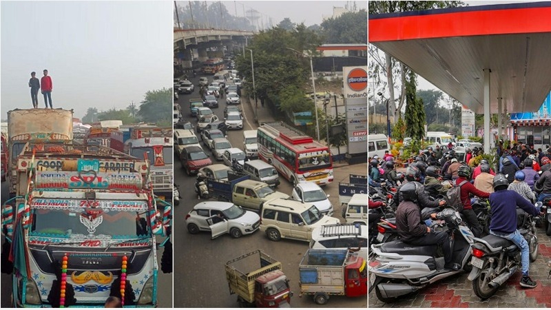 புதுடெல்லி: வாகன விபத்தை ஏற்படுத்துவோருக்கு கடுமையான தண்டனைகளை வழங்கும் விதமாக குற்றவியல் சட்டத்தில் திருத்தம் செய்யப்பட்டுள்ளதைக் கண்டித்து, வட மாநிலங்களில் லாரி ஓட்டுநர்கள் 3 நாட்கள் வேலை நிறுத்தத்தில் ஈடுபட்டுள்ளனர். இரண்டாம் நாளான இன்று (ஜன.2) இப்போராட்டம் தீவிரமடைந்துள்ள நிலையில், வட மாநிலங்களில் பரவலாக பல நகரங்களிலும் பெட்ரோல், டீசல் வாங்க கூட்டம் குவிந்த வண்ணம் உள்ளது. வாகன ஓட்டிகள் பீதியில் வாகனங்களில் எரிபொருளை முழுமையாக நிரப்பி வைக்க குவிந்த வண்ணம் உள்ளனர். லாரி வரத்து இல்லாததால் சில பங்க்குகளில் பெட்ரோல், டீசல் தட்டுப்பாடும் நிலவுகிறது.