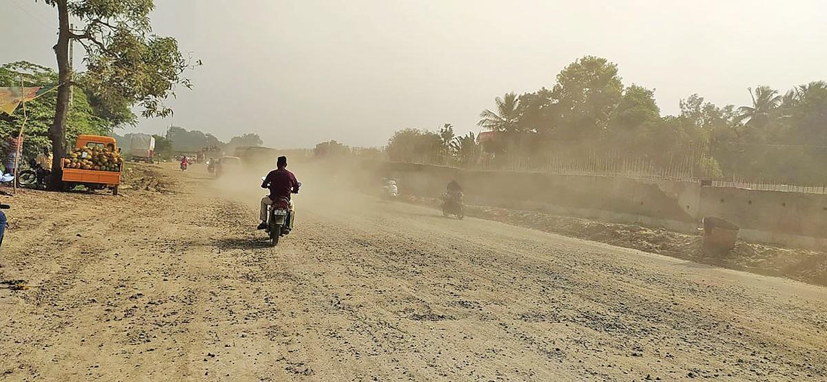இதுதொடர்பாக வாகனஓட்டிகள் கூறுகையில், “வில்லியனுார் புறவழிச்சாலையில் 2 இடங்களிலும், சுல்தான்பேட்டையில் 2 இடங்களிலும் வாய்க்கால் பாலம் அமைக்கும் பணி முடிந்தாலும் தார்ச் சாலை அமைக்கவில்லை. இதிலிருந்து எழும் புழுதி வாகன ஓட்டிகளை நிலைகுலையச் செய்கிறது.