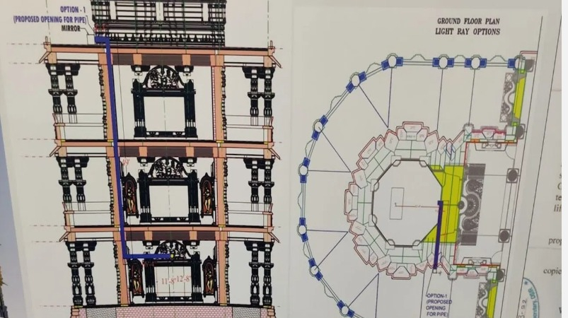 கோயிலின் மூன்றாவது மாடியில் கியர்பாக்ஸ் மற்றும் உயர்தரமான ஆப்டிகல் லென்ஸ் பொருத்தப்படும். அங்கிருந்து பித்தளையால் ஆன குழாய் தரைதளத்தில் உள்ள கருவறை வரை பொருத்தப்படும். லென்ஸில் படும் சூரிய ஒளி, குழாயில் உள்ள தொடர் பிரதிபலிப்பான்கள் மூலம் கருவறைக்கு திசை திருப்பப்படும். இதன்மூலம் அங்குள்ள ராமர் சிலையின் நெற்றியில் சூரிய ஒளி விழும். சூரிய பாதையை கண்டறியும் கொள்கை மூலம் இது செயல்படும். இதற்கு மின்சாரம், பேட்டரி, இரும்பு உள்ளிட்ட எதுவும் தேவையில்லை. எனினும் அடுத்த 19 ஆண்டுக்கு இது செயல்படும்.