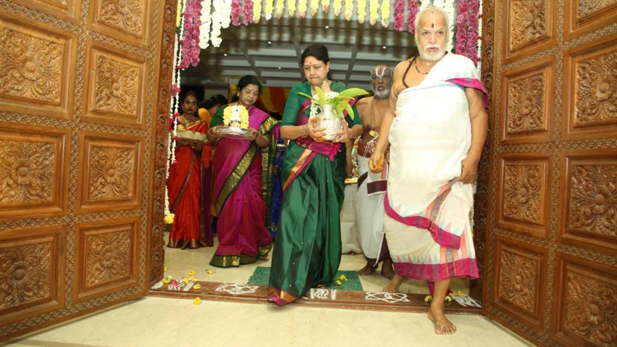 சென்னை: சென்னையில் உள்ள போயஸ் தோட்டத்தில் முன்னாள் முதல்வர் ஜெயலலிதாவின் வேதா நிலையத்தில் 30 ஆண்டுகளுக்கும் மேலாக வசித்து வந்த சசிகலா, மீண்டும் அதேபகுதியில் உள்ள புதிய வீட்டில் கோ பூஜை செய்து நேற்று குடியேறினார்.