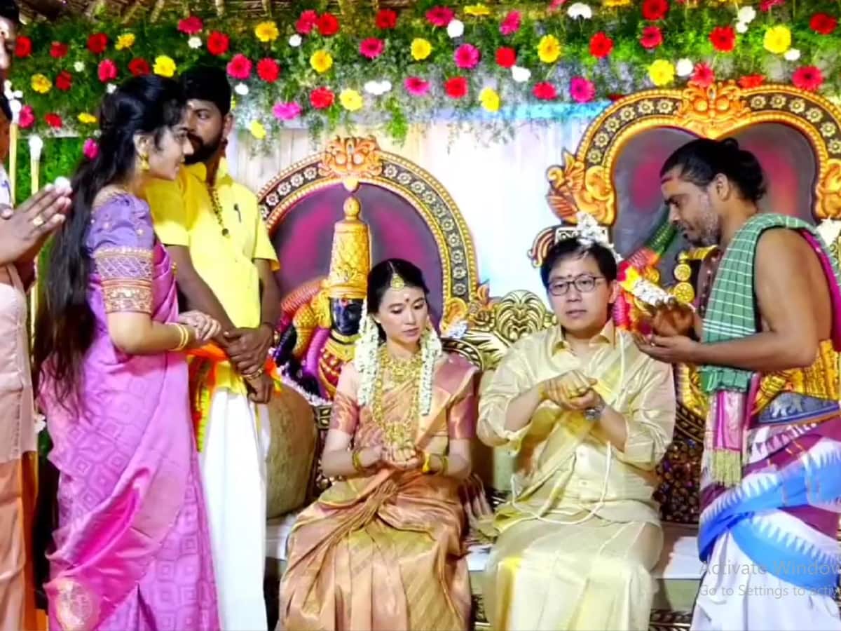 தைவான் நாட்டை சேர்ந்த காதல் ஜோடிக்கு சீர்காழியில் இந்து முறைப்படி திருமணம் நடத்த சம்பவம் பலருக்கு ஆச்சர்யத்த்தை ஏற்படுத்தியுள்ளது.