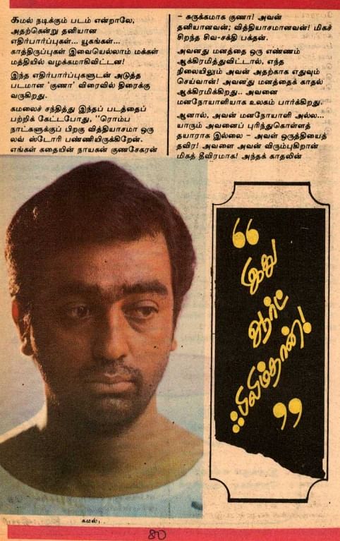 ‘குணா’ திரைப்படம் வெளியாகவிருந்த சமயத்தில் கமல்ஹாசன் ஆனந்த விகடனுக்காக ஒரு பேட்டி கொடுத்திருந்தார்.