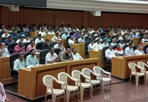 தேர்தல் பணி தொடர்பான கூட்டத்தில் பங்கேற்ற அதிகாரிகள். இடம்: ராம்நகர்.