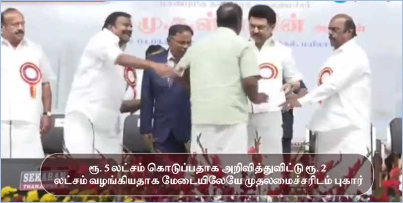 மயிலாடுதுறை: முதல்வர் ஸ்டாலின் கொடுத்த நிவாரணம் காசோலையை திருப்பி கொடுத்தது ஏன் என்பது குறித்து மீனவர் ரமேஷ் விளக்கம் அளித்துள்ளார். மயிலாடுதுறையில் மார்ச் 4ந்தேதி நடைபெற்ற அரசு விழாவில், மீனவர்களுக்கு இழப்பீடாக வழங்குவதாக அறிவித்திருந்த ரூ. 5லட்சத்துக்கு பதிலாக ரூ. 2 லட்சம் காசோலை மட்டுமே வழங்கியதற்கு பூம்புகாரை சேர்ந்த மீனவர் ரமேஷ், முதலமைச்சர் ஸ்டாலினிடம் விழா மேடையிலேயே புகார் அளித்தார். பின்னர், தனக்கு வழங்கப்பட்ட காசோலையை, அமைச்சர் கேகேஎஸ்எஸ்ஆர் ராமச்சந்திரனிடம் மேடையிலேயே திருப்பி கொடுத்தார். இது […]