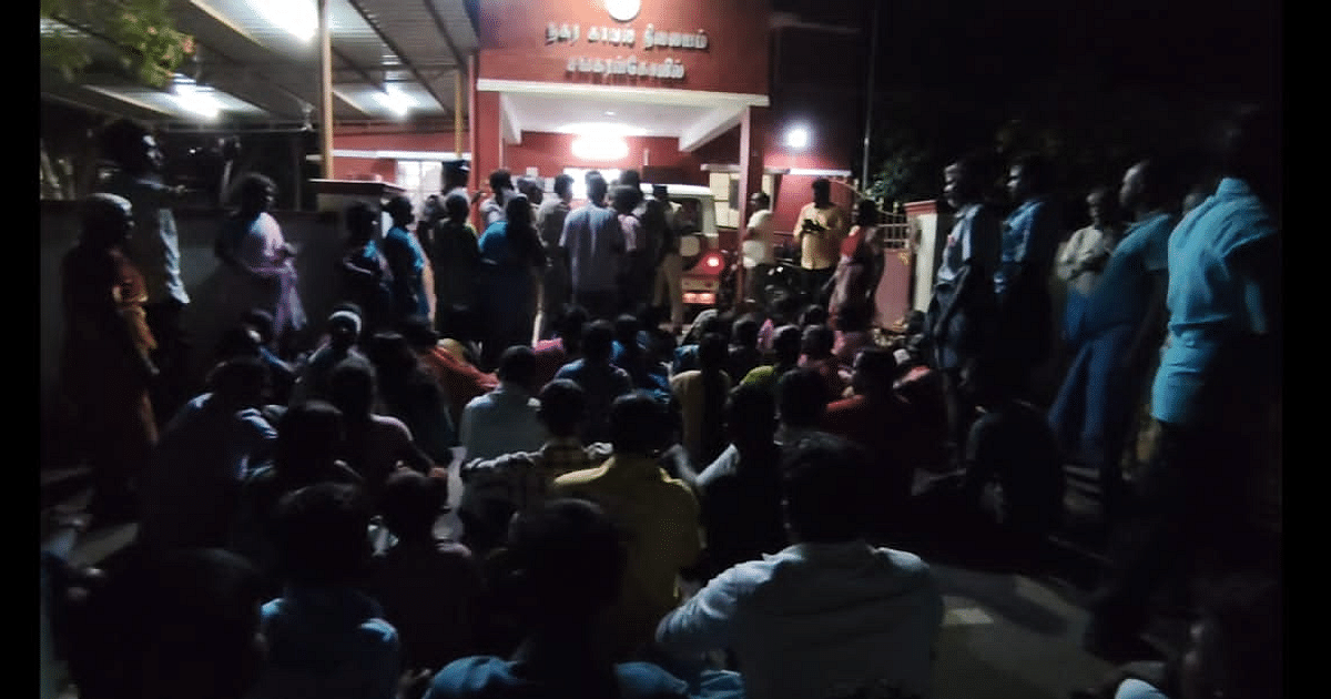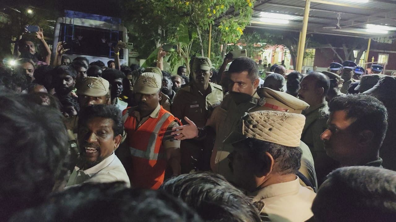 இந்த நிலையில் விசாரணைக்காக முருகனை போலீஸ் அழைத்துச் சென்ற தகவலறிந்து காவல் நிலையம் வந்த அவரின் உறவினர்கள், வேனில் அவர் இறந்துகிடப்பதை கண்டு அதிர்ச்சியடைந்துள்ளனர். தொடர்ந்து, போலீஸ் தாக்கியதில்தான் முருகன் உயிரிழந்துவிட்டார், அவரின் உயிரிழப்புக்கு காரணமான போலீஸார் மீது நடவடிக்கை எடுக்க வேண்டும் என வலியுறுத்தி, முருகனின் உறவினர்கள் மற்றும் கிராம மக்கள் நூற்றுக்கணக்கானோர் திரண்டு சங்கரன்கோவில் நகர காவல் நிலையத்தை முற்றுகையிட்டு போராட்டம் நடத்தினர். இதனால் அங்கு பெரும் பரபரப்பு ஏற்பட்டது. சுமார் நூற்றுக்கும் மேற்பட்டோர் சேர்ந்து நள்ளிரவில் திடீரென சாலைமறியலிலும் ஈடுபட்டதால் ராஜபாளையம்-சங்கரன்கோயில் சாலையில் போக்குவரத்து பாதிக்கப்பட்டது.