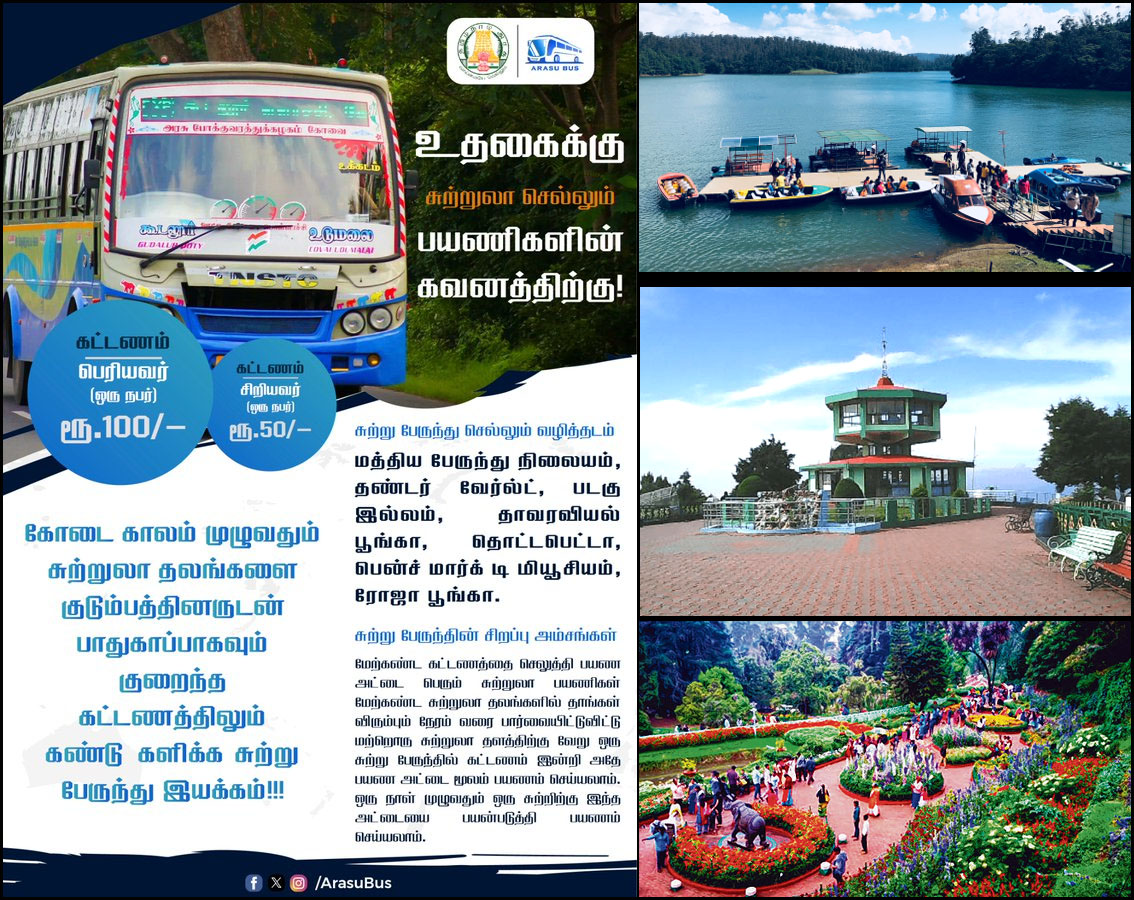 சென்னை: உதகைக்கு சுற்றுலா செல்லும் பயணிகளின் வசதிக்காக சுற்று பேருந்து இயக்கப்படுவதாக தமிழ்நாடு அரசு அறிவித்து உள்ளது. அதன்படி பெரியவர் ஒன்றுக்கு ரூ.100 கட்டணமும், சிறியவர்களுக்கு ரூ.50 கட்டணமும் வசூலிக்கப்படுகிறது. கோடை விடுமுறை காரணமாக மலை வாசஸ்தலங்களுக்கு மக்கள் குடும்பத்துடன் சுற்றுலா செல்ல தொடங்கி உள்ளனர். அதன்படி, கொடைக்கானல், ஊட்டி மட்டுமின்றி அண்டை மாநிலங்களிலுக்கும் மக்கள் குடும்பத்தோடு படையெடுத்து வருகின்றனர். ஊட்டியில் இந்த வருடம் வெயிலுடன் ஈரப்பதும் காணப்பட்டாலும், ஊட்டிக்கு சுற்றுலா பயணிகளின் வருகை நாளுக்கு நாள் […]