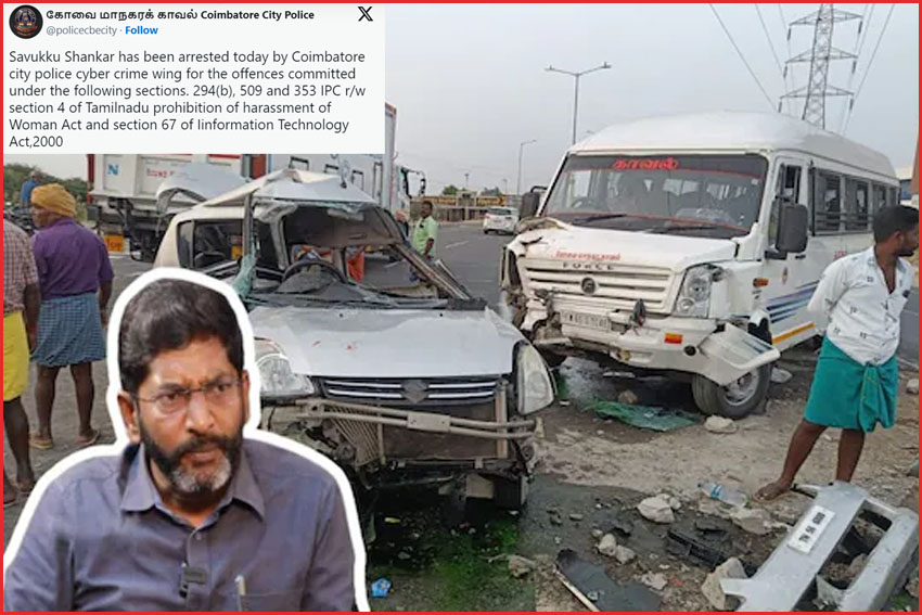 கோவை: தேனியில் இருந்த பத்திரிகையாளர் சவுக்கு சங்கரை நள்ளிரவு கைது செய்த காவல்துறையினர், அவரை கோவைக்கு அழைத்துச் சென்ற வாகனம், செல்லும் வழியில் விபத்துக்குள்ளானது. இதில் சவுக்கு சங்கர் உள்பட காவலர்கள் சிலர் காயமடைந்துள்ளதாக கூறப்படுகிறது. சவுக்கு மீடியோ என்ற பெயரில் ஊடகும், சவுக்கு என்ற பெயரில் டியூபும் நடத்தி வருபவர் சவுக்கு சங்கர். இவர் திமுக அரசுக்கு எதிராக பேசி வருகிறார். திமுக ஆட்சியில் நடைபெறும் ஊழல் முறைகேடுகள், ஆட்சியாளர்கள் மற்றும் முதலமைச்சர் ஸ்டாலின் குடும்பத்தினர் […]