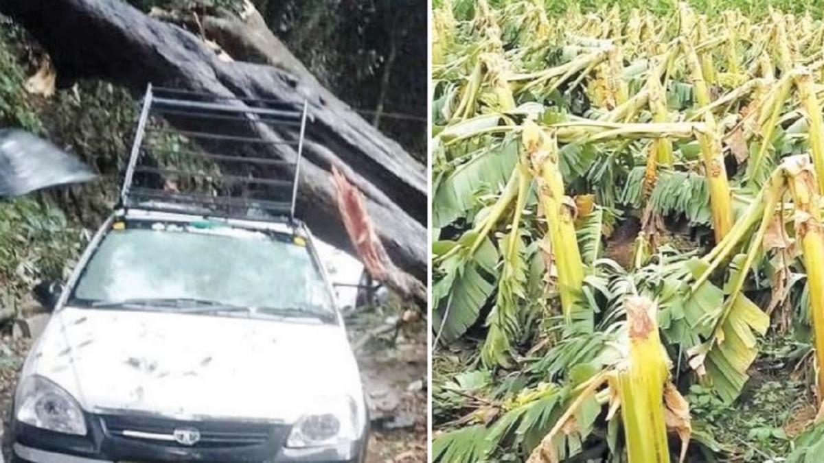 காரமடை, சிறுமுகை, அவிநாசி உள்ளிட்ட பகுதிகளில் நேற்று மாலை பலத்த காற்று வீசியது. தொடர்ந்து மழை பெய்தது. சூறாவளிக் காற்றால் சிறுமுகை, லிங்காபுரம், காந்தவயல் பகுதிகளில் 20 ஆயிரத்துக்கும் மேற்பட்ட வாழை மரங்கள் முறிந்து விழுந்து சேதமடைந்தன. ஒன்பது மாத பயிரான வாழை, அறுவடைக்கு இன்னும் சில வாரங்களே இருந்த நிலையில் சூறாவளிக் காற்றில் சிக்கி முறிந்து வீணானது விவசாயிகளை சோகத்தில் ஆழ்த்தியுள்ளது.