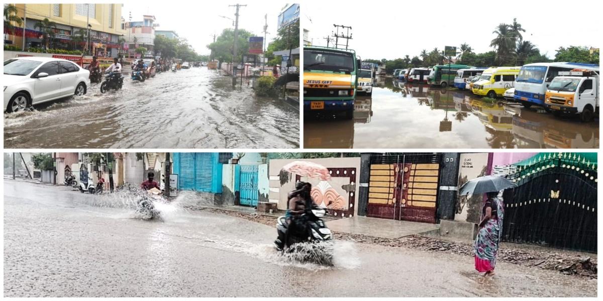 இந்நிலையில், தூத்துக்குடி மாவட்டத்தில் கடந்த 2 நாட்களாக லேசான சாரல் மழை பெய்து வந்தது. தூத்துக்குடி சுற்றுவட்டார பகுதிகளில் செவ்வாய்க்கிழமை காலையில் கனமழை பெய்தது. காலை 6 மணி முதல் 8 மணி வரை தூத்துக்குடியில் இடி மின்னலுடன் மழை பெய்தது. 2 மணி நேரமாக பெய்த மழையால் தூத்துக்குடி நகரில் பெரும்பாலான பகுதிகளில் மழை நீர் தேங்கியது. முக்கிய சாலைகளில் மழைநீர் பெருக்கெடுத்து ஓடியது. பல சாலைகள், தெருக்களில் மழைநீர் குளம் போல தேங்கி நின்றது. தாழ்வான சில இடங்களில் வீடுகளுக்குள் தண்ணீர் புகுந்தது. தூத்துக்குடி பகுதியில் உள்ள உப்பளங்களிலும் மழைநீர் தேங்கியது. இதனால் உப்பு உற்பத்தி பாதிக்கப்பட்டது. சாலைகளில் தேங்கிய மழைநீரில் வாகனங்கள் ஊர்ந்து சென்றன.