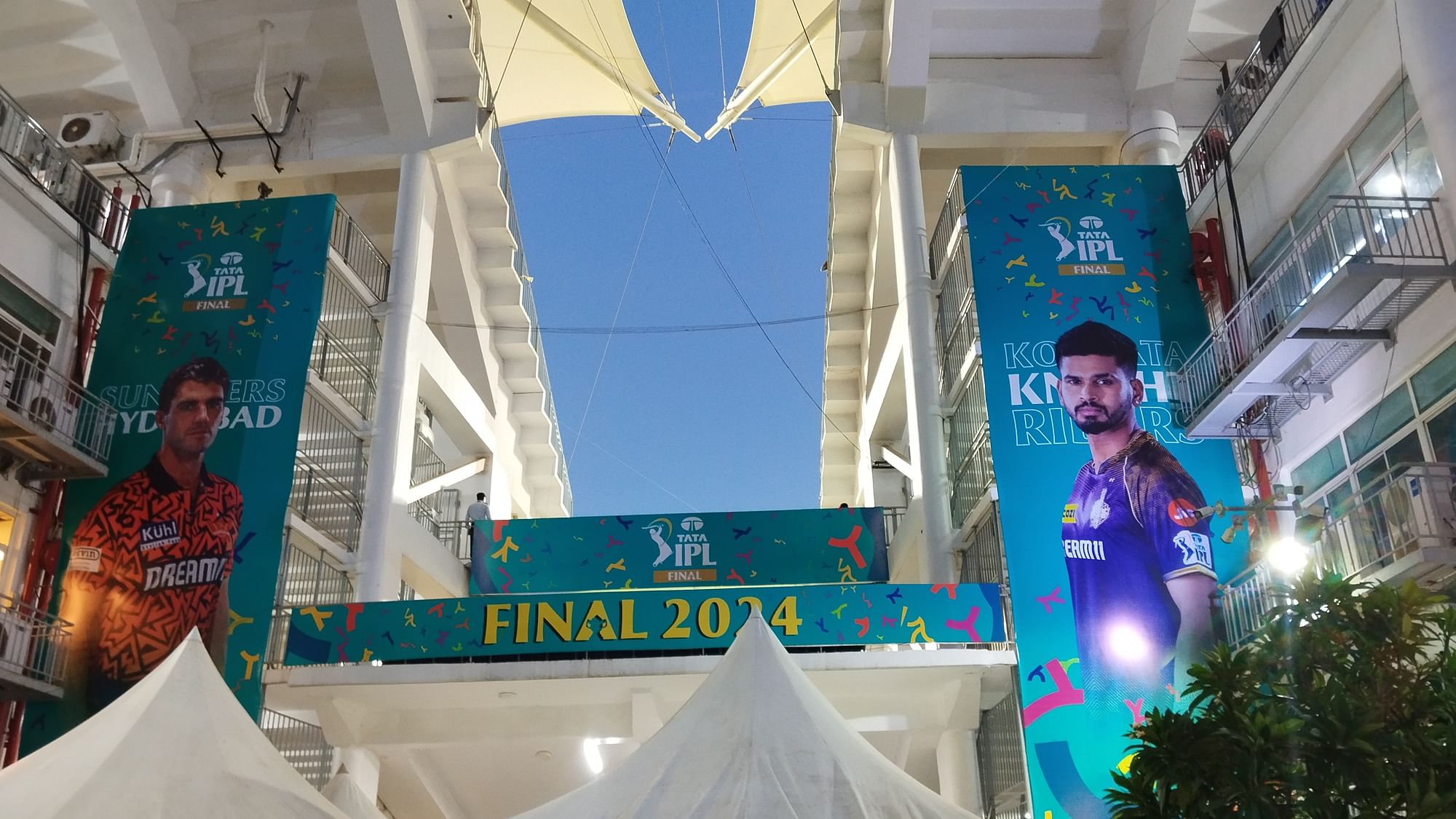சேப்பாக்கத்தில் நடக்கும் இறுதிப்போட்டி கொல்கத்தாவுக்கும் ஹைதராபாத்துக்கும்தான் என பேனர் வைக்கப்பட்டிருப்பதாகத்தான் அந்தப் புகைப்படம் இணையத்தில் பரவி வருகிறது. அந்தப் புகைப்படம் உண்மையானதுதான், அது சேப்பாக்கத்தில் வைக்கப்பட்டிருக்கும் பேனர்தான். ஆனால், தவறாகப் புரிந்துகொள்ளப்பட்டு தவறாகப் பரப்பப்பட்டு வருகிறது. ஏனெனில், மைதானத்தில் பிளே ஆஃப்ஸூக்குத் தகுதிபெற்ற நான்கு அணிகளின் கேப்டன்களுக்குமே வரிசையாக பேனர்கள் வைக்கப்பட்டிருக்கின்றன.