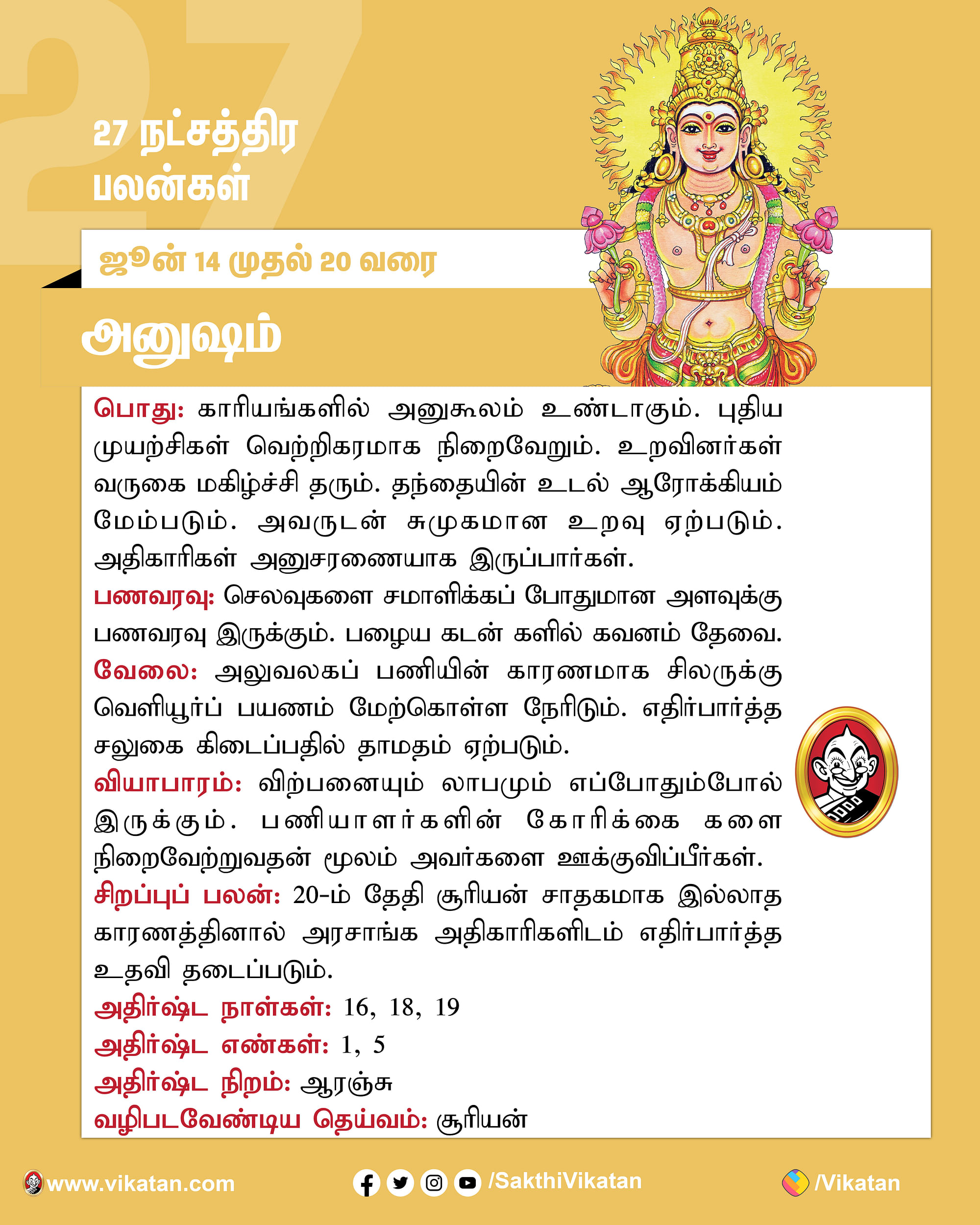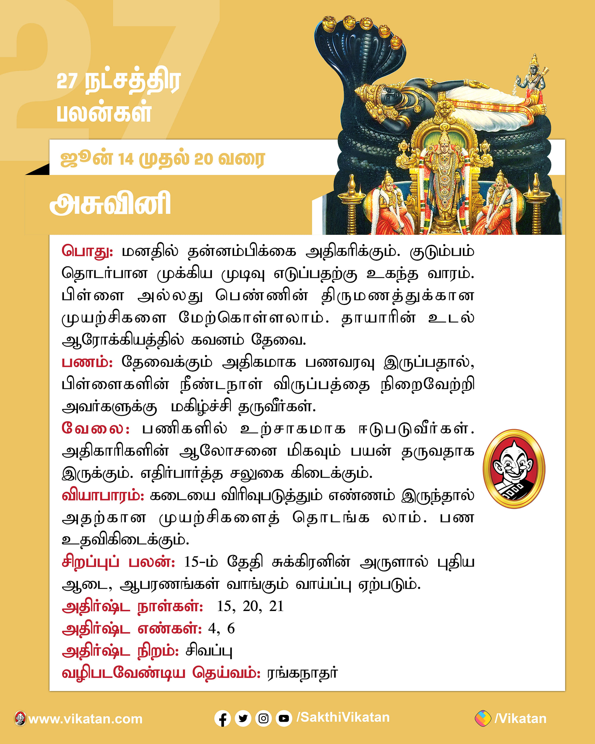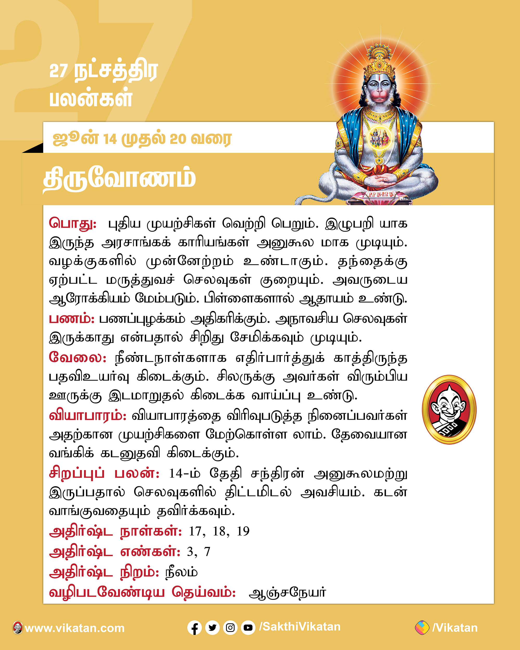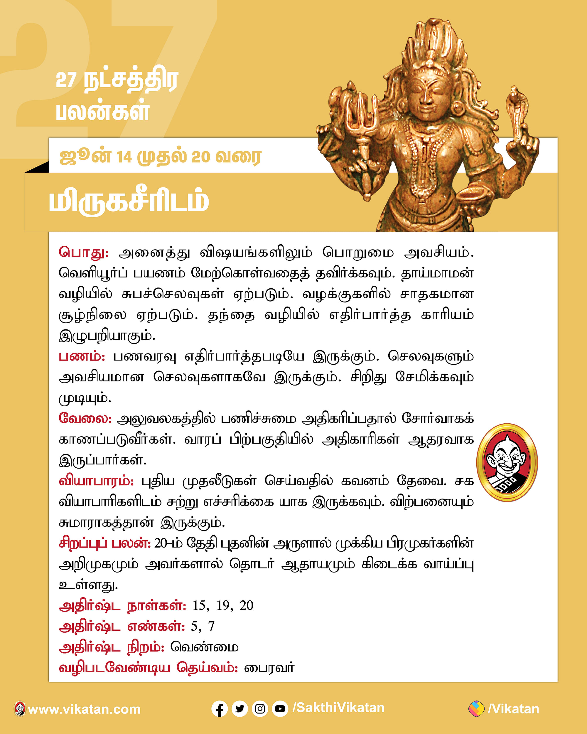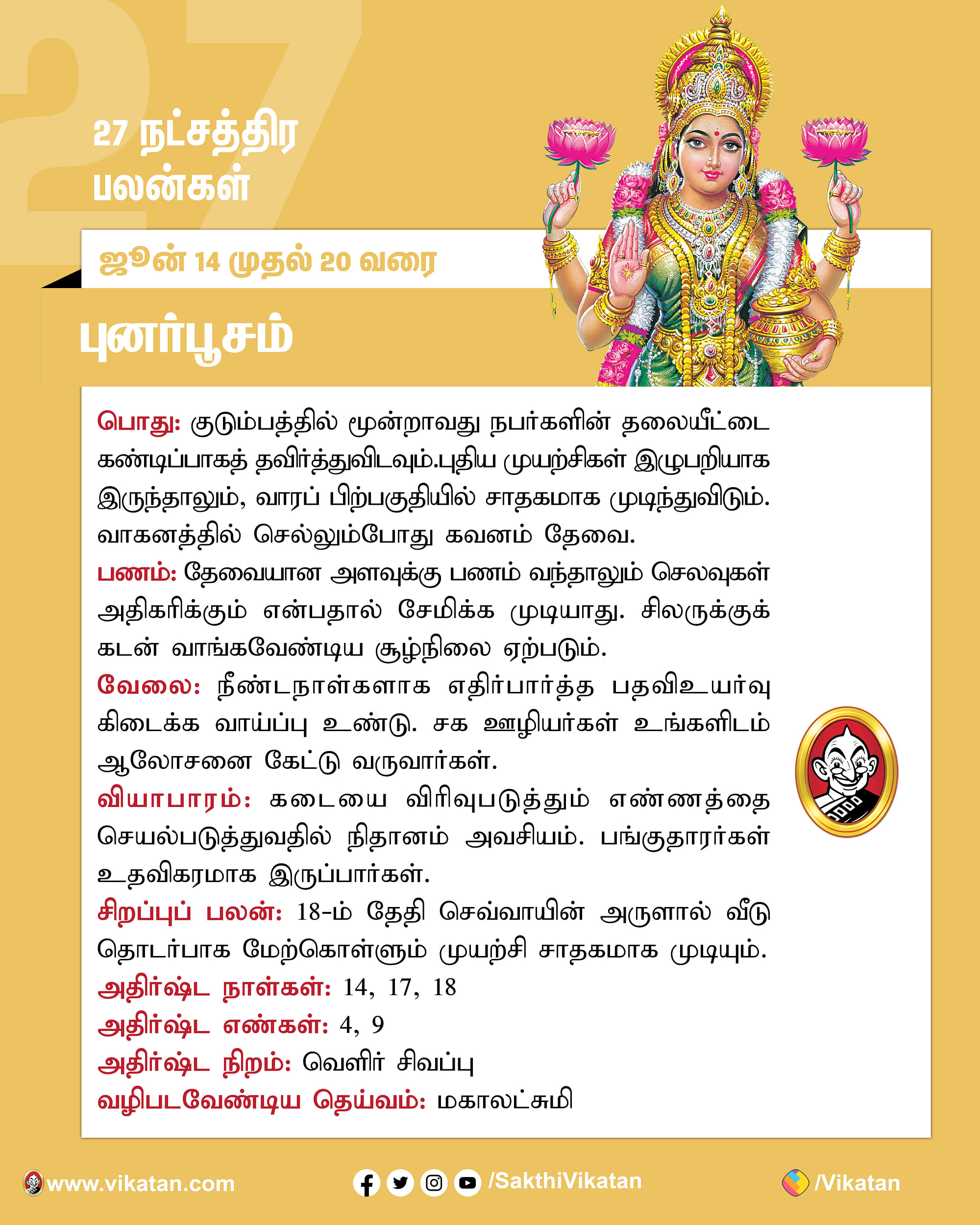 நட்சத்திரப் பலன்கள்: ஜூன் 14 முதல் 20 வரை #VikatanPhotoCards June 14, 2024 by விகடன் அசுவினி பரணி கிருத்திகை ரோகிணி மிருகசீரிடம் திருவாதிரை புனர்பூசம் பூசம் ஆயில்யம் மகம் பூரம் உத்திரம் அஸ்தம் சித்திரை சுவாதி விசாகம் அனுஷம் கேட்டை மூலம் பூராடம் உத்திராடம் திருவோணம் அவிட்டம் சதயம் பூரட்டாதி உத்திரட்டாதி ரேவதி Source link