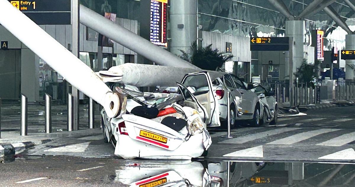 மேற்கூரை இடிந்து விழுந்ததைத் தொடர்ந்து டெர்மினல்-1 பகுதியில் இயக்கப்படவிருந்த இண்டிகோ, ஸ்பைஸ்ஜெட் உள்ளிட்ட விமானச் சேவைகளில் சில ரத்து செய்யப்பட்டன.