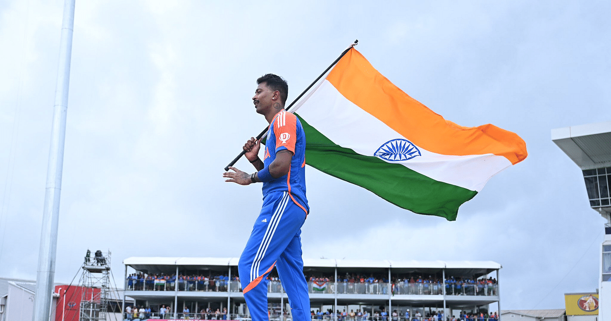 பிட்ச்சுக்கு நடுவே உலகக்கோப்பையை சுமந்தபடி கம்பீரமாக நிற்கிறார் ஹர்திக் பாண்ட்யா. உலகக்கோப்பை இந்தியாவின் கைகளில் தவழ மிக முக்கிய காரணங்களுள் அவரும்.