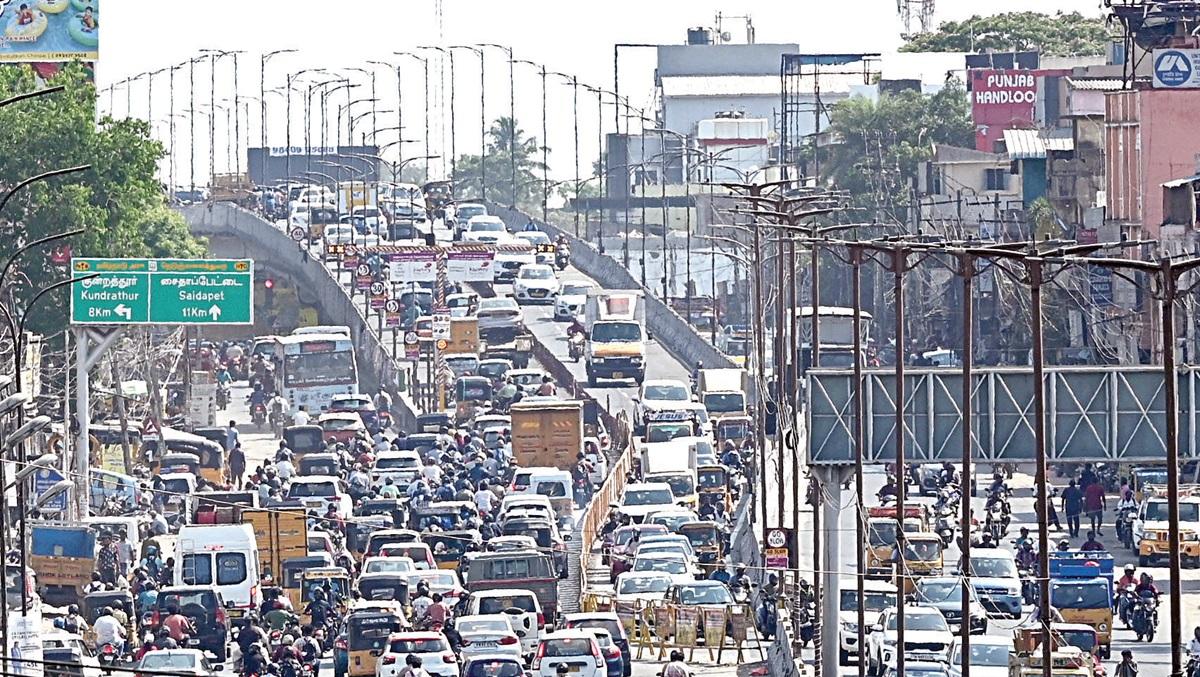 ஆனால், தற்போது காலை ‘பீக் ஹவரில்’ மீண்டும்அப்பகுதியில் போக்குவரத்து நெரிசல் நிலவி வருகிறது. குறிப்பாக, அந்த பாலத்துக்கு முன்னதாக அமைந்துள்ள துரைப்பாக்கம் ரேடியல் சாலை சந்திப்புபாலத்திலும், பாலத்தின் கீழ் திருநீர்மலை செல்லும் சாலையில் இருந்து வாகனங்கள் வெளியில் வரும் இடங்களிலும் போக்குவரத்து நெரிசல் கடுமையாக ஏற்படுகிறது.