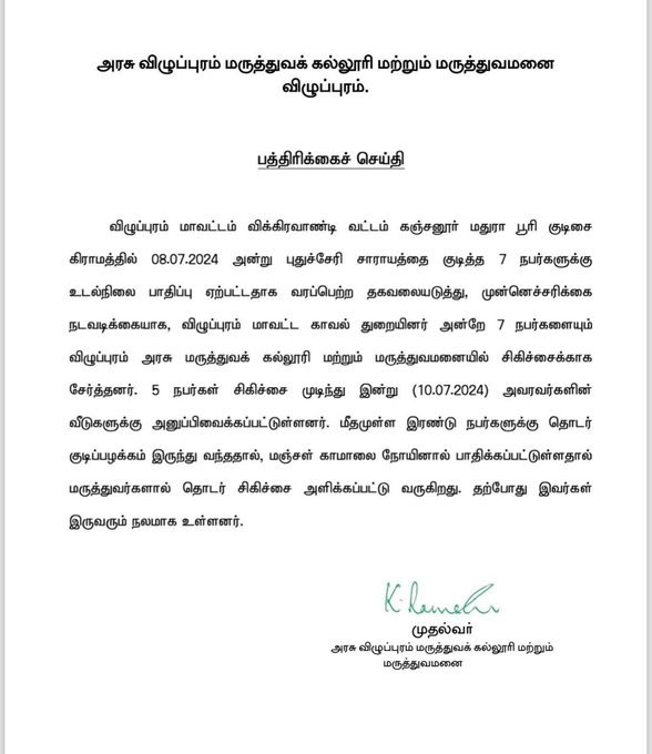 விக்கிரவாண்டி இடைத் தேர்தல் நடைபெறும் விக்கிரவாண்டியில் சாராயம் குடித்து 7 பேர் உடல்நலம் பாதிப்பு அடைந்துள்ளனர். கடந்த ஏப்ரல் மாதம் 6 ஆம் தேதி விழுப்புரம் மாவட்டம் விக்கிரவாண்டி தி.மு.க. சட்டமன்ற தொகுதி உறுப்பினராக இருந்த நா.புகழேந்தி மரணம் அடைந்ததால் விக்கிரவாண்டி தொகுதிக்கு இடைத்தேர்தல் அறிவிக்கப்பட்டு இன்று காலை 7 மணி முதல் வாக்குப்பதிவு தொடங்கி நடைபெற்று வருகிறது. வாக்குப்பதிவு நடைபெற்று வரும் நிலையில் விக்கிரவாண்டி பகுதியில் சாராயம் குடித்த 7 பேர் வாந்தி, மயக்கம் காரணமாக […]