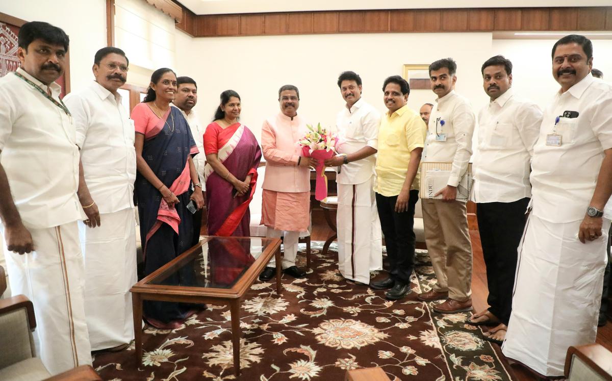 இன்று நாடாளுமன்றத்தின் கட்டிட வளாகத்திற்கு வந்தவர், தூத்துக்குடி மக்களவை தொகுதியின் உறுப்பினருமான கனிமொழி கருணாநிதியை சந்தித்தார். இவர்கள் தமிழ்நாட்டின் சில மக்களவை மற்றும் மாநிலங்களவை உறுப்பினர்களுடன் மத்திய கல்வி அமைச்சர் தர்மேந்திர பிரதானை சந்தித்து பேசினார்கள்.