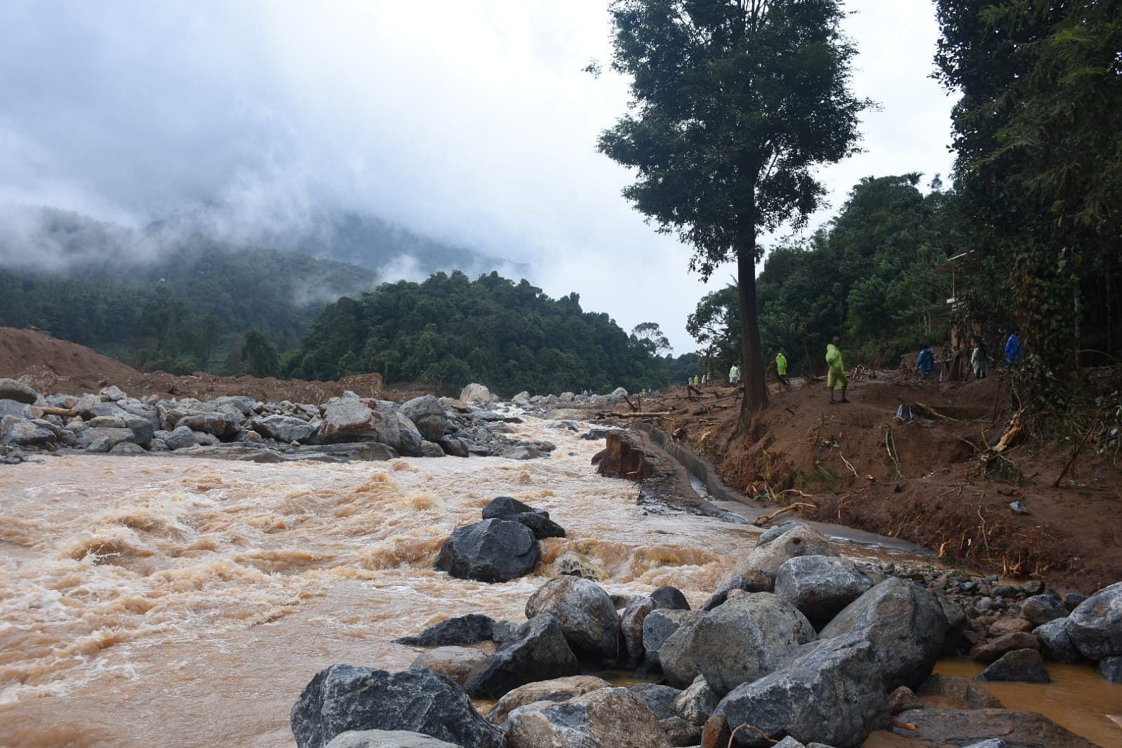 காட்டாற்று வெள்ளத்துடன் மலை உச்சியில் இருந்து அடித்து வரப்பட்ட பல்லாயிரக்கணக்கான ராட்சத பாறைகள் மற்றும் ராட்சத மரங்கள் அந்த பகுதியையே புரட்டிப் போட்டிருக்கிறது.