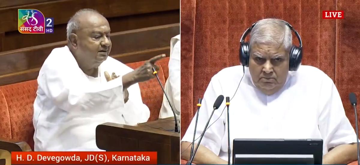 இதையடுத்து, அவைத் தலைவர் தன்கருக்கு ஆதரவாக மதச்சார்பற்ற ஜனாதா தளம் எம்பியான முன்னாள் பிரதமர் தேவகவுடா பேசினார். அப்போது அவர், “அவைத் தலைவர் ஜக்தீப் தன்கரை எதிர்க்கட்சி உறுப்பினர்கள் எவ்வாறு அவமதித்தார்கள் என்பதை நான் உன்னிப்பாக கவனித்தேன். இரு தரப்புக்கும் இடையில் பிரச்சினையை சரி செய்ய நீங்கள் (ஜக்தீப் தன்கர்) முயன்றீர்கள். நீங்கள் கூறியதை ஏறக்குறைய ஏற்கும் நிலையில் எதிர்க்கட்சித் தலைவர் மல்லிகார்ஜுன கார்கே இருந்தார். ஆனால், எதிர்க்கட்சி எம்பிக்களில் சிலர், அவரை தூண்டும் விதமாக நடந்து கொண்டார்கள். அவர்கள் யார் என்பதை நான் சொல்ல விரும்பவில்லை.