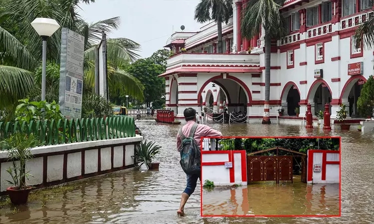 பீகாரில் பருவமழையை முன்னிட்டு தொடர்ந்து கனமழை பெய்து வருகிறது. இதனால், தாழ்வான பகுதிகள், சட்டசபை மற்றும் அதில் இருந்து சில மீட்டர் தொலைவில் அமைந்துள்ள மந்திரிகளின் பங்களாக்கள் மற்றும் பல்வேறு மருத்துவமனைகள் உள்ளிட்ட பகுதிகளை சுற்றி வெள்ள நீர் சூழ்ந்துள்ளது.