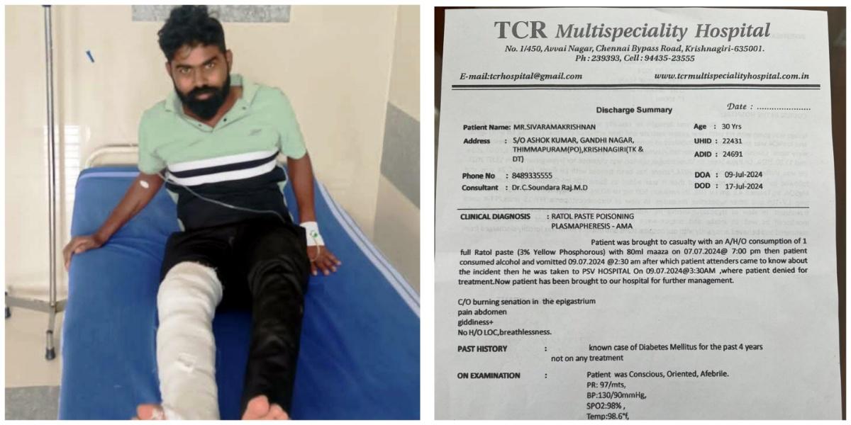 கடந்த 16 மற்றும் 18 ஆகிய தேதிகளில் எலி மருந்து சாப்பிட்டதாகக் கூறப்படுபவர், நேற்று மாலை வரை, ஐந்து நாட்களாக, எந்தப் பாதிப்பும் இல்லாமல் இருந்தார் என்பது மர்மமாக இருக்கிறது. அவர் எலி மருந்து உண்டதாக, திடீரென்று நேற்று மாலை முதல் செய்திகள் வெளியானதும், சந்தேகத்தை எழுப்புகிறது. கால் உடைந்த நிலையில், கடந்த 19-ம் தேதி அன்று, மருத்துவமனையில் சிகிச்சை பெற்றவருக்கு, ஐந்து நாட்களாக, உடலில் வேறு பாதிப்புகள் ஏற்பட்டிருப்பது தெரியவில்லையா?