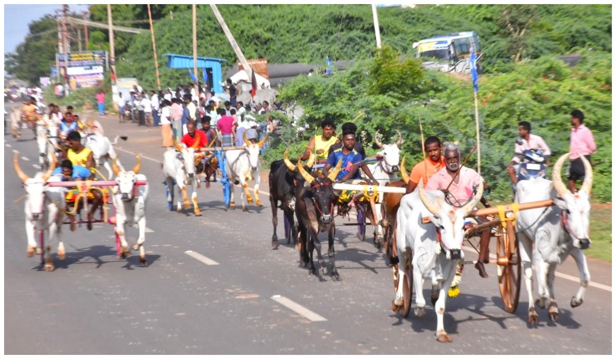சிவகங்கை, ராமநாதபுரம், மதுரை, புதுக்கோட்டை, தஞ்சாவூர் உள்ளிட்ட மாவட்டங்களைச் சேர்ந்த 42 ஜோடிகள் பங்கேற்றன. பெரியமாடு பிரிவில் 10 ஜோடிகள், சின்ன மாடு பிரிவில் 16 ஜோடிகள், பூஞ்சிட்டுப் பிரிவில் 16 ஜோடிகள் பங்கேற்றன. பெரிய மாடுகளுக்கு 8 மைல்கள், சின்ன மாடுகளுக்கு 6 மைல்கள், பூஞ்சிட்டு மாடுகளுக்கு 5 மைல்கள் எல்லைகளாக நிர்ணயிக்கப்பட்டன.