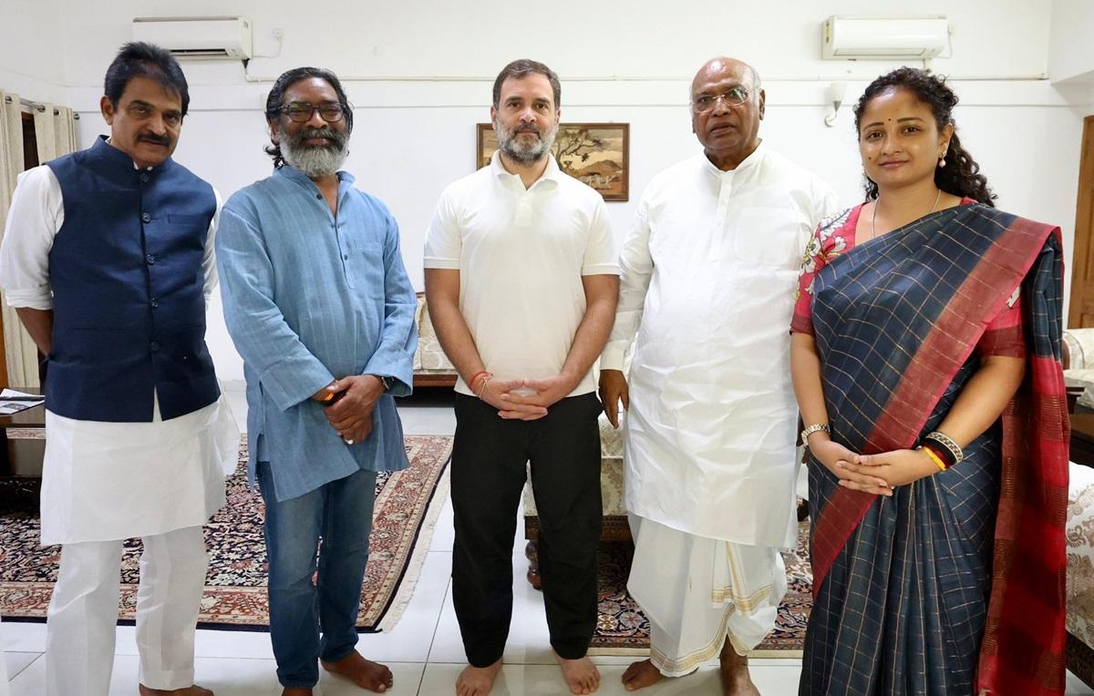 புதுடெல்லி: ஜார்க்கண்ட் முதல்வர் ஹேமந்த் சோரன் காங்கிரஸ் தலைவர்கள் மல்லிகார்ஜுன கார்கே, ராகுல் காந்தி, கே.சி. வேணுகோபால் ஆகியோரை நேற்று டெல்லியில் சந்தித்துப் பேசினார். அப்போது, சட்டப்பேரவை தேர்தல் வியூகம்தொடர்பாக அவர்கள் ஆலோசனை நடத்தியதாக கூறப்படுகிறது.