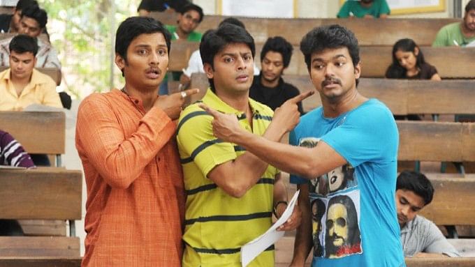 இயக்குநர் ஷங்கர் இயக்கத்தில் விஜய் தனது கம்ஃபர்ட் சோனை விட்டு வெளியே வந்து ஆக்‌ஷன், அதிரடி இல்லாமல் ஜாலியாக நடித்த திரைப்படம். இதில் ஶ்ரீகாந்த் மற்றும் ஜீவா விஜய்யுடன் படம் முழுவதும் பயணம் செய்தனர்.