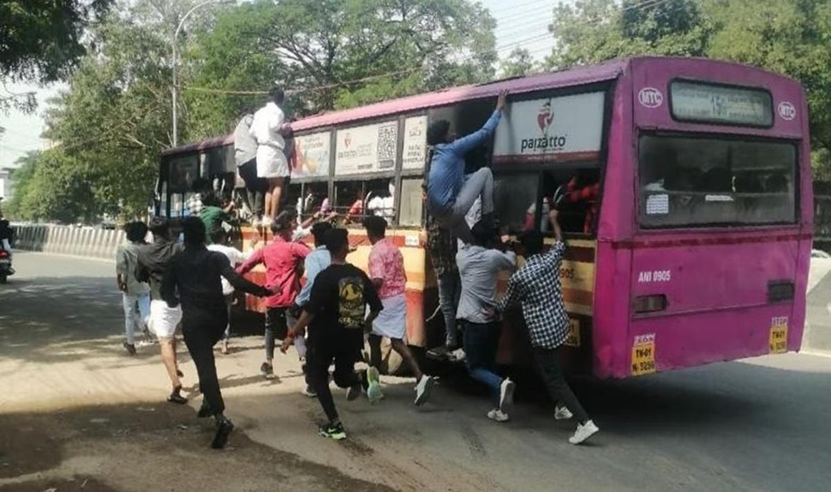 சென்னை: சென்னையில் கல்லூரி செல்லும் சில மாணவர்கள் பேருந்துகளில் கானா பாடல்கள் பாடியும், சாகசம் என்ற பெயரில் பேருந்து படிக்கட்டுகளில் தொங்கியபடியும் ஆபத்தான பயணம் செய்கின்றனர். மேலும், பேருந்து மற்றும் ரயில் வழித்தடங்களில் ரூட் தல என்ற பெயரில் வன்முறை, பொது அமைதிக்கு பங்கம் விளைவிக்கும் சம்பவங்களிலும் ஈடுபடுகின்றனர். இப்படிப்பட்ட மாணவர்கள் மீது அவ்வப்போதுகாவல் துறை கடுமையான நடவடிக்கை எடுக்கிறது.