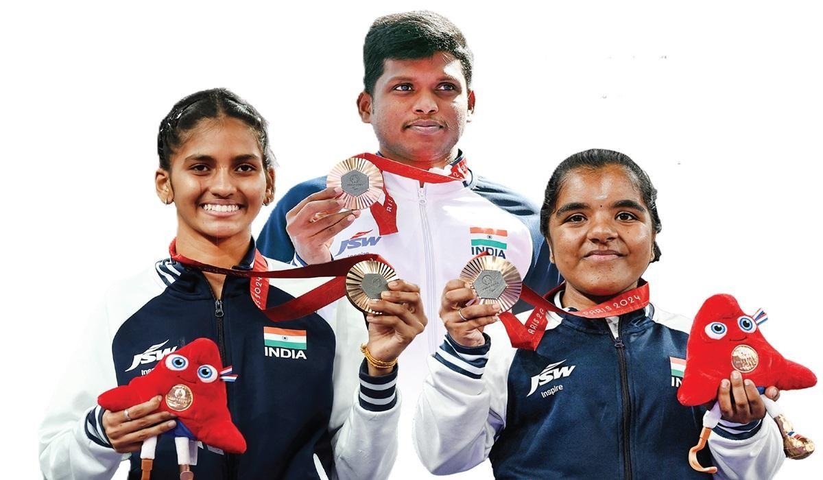 சென்னை தலைமைச் செயலகத்தில், முதல்வர் மு.க.ஸ்டாலின் இன்று (செப்.25) காலை, இளைஞர் நலன் மற்றும் விளையாட்டு மேம்பாட்டுத்துறை சார்பில், பிரான்ஸ் நாட்டின் பாரிஸில் நடைபெற்ற பாரா ஒலிம்பிக் போட்டியிகளில் வெள்ளி, வெண்கலப் பதக்கங்கள் வென்ற விளையாட்டு வீராங்கனைகள் துளசிமதி, நித்யஸ்ரீ, மனிஷா மற்றும் விளையாட்டு வீரர் மாரியப்பன் ஆகியோருக்கு உயரிய ஊக்கத் தொகையாக மொத்தம் ரூ.5 கோடிக்கான காசோலைகளை வழங்கி வாழ்த்தினார்.