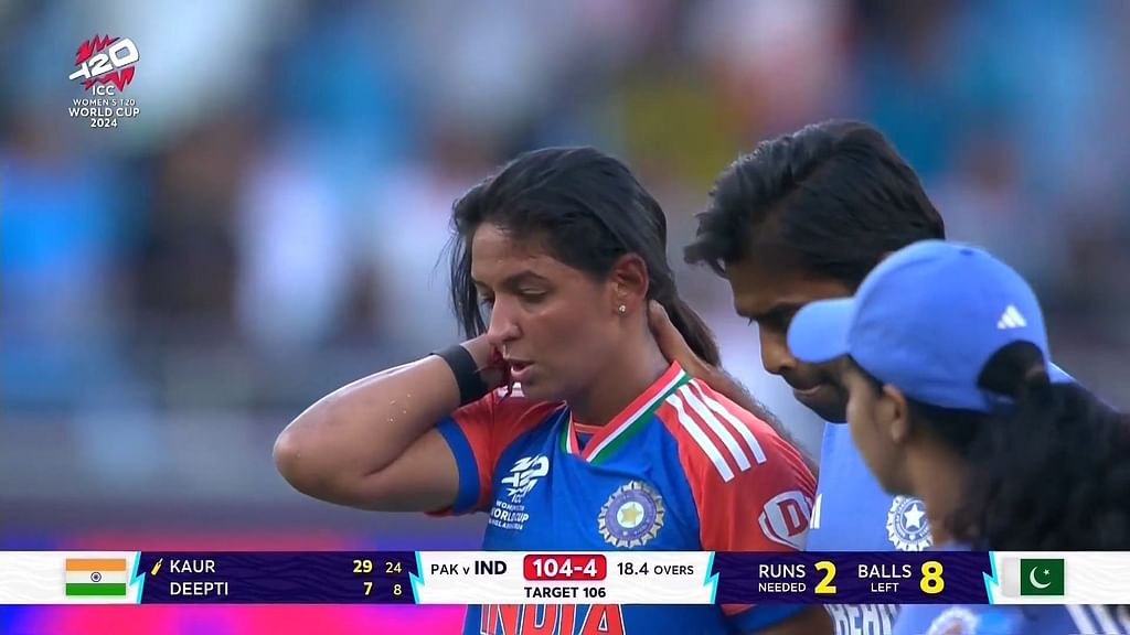 106 என்கிற டார்கெட்டை எட்ட 18.5 ஓவர்களை இந்திய அணி எடுத்துக் கொண்டது. இந்தியாவின் டாப் 3 பேட்டர்களான ஷெபாலி வர்மா, ஸ்மிருதி மந்தனா, ஜெமிமா என மூவரின் ஸ்ட்ரைக் ரேட்டும் 100 க்கு கீழாகத்தான் இருந்தது. ஸ்மிருதி சதியா இக்பாலின் பந்தில் 7 ரன்களில் அவுட் ஆகினார். இரண்டாவது விக்கெட்டுக்கு கூட்டணி அமைத்த ஷெபாலியும் ஜெமிமாவும் நிதானமாக பார்ட்னர்ஷிப்பை பில்ட் செய்தனர். இருவரும் இணைந்து 43 ரன்களை சேர்த்து பிரிந்தனர். வழக்கமாக அதிரடியாக ஆடும் ஷெபாலி இங்கே 35 பந்துகளில் 32 ரன்களை மட்டுமே எடுத்து பெரிய ஷாட்டுக்கு முயன்று ஒமைமா சொஹைலின் பந்தில் அவுட் ஆகினார். பாத்திமா வீசிய 16 வது ஓவர் ஆட்டத்தின் பரபரப்பை கூட்டியது. இந்த ஓவரில் ஜெமிமா, ரிச்சா என இருவருமே அடுத்தடுத்து அவுட் ஆகினர்.