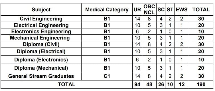பயிற்சி அளிக்கப்படும் பாடப்பிரிவுகள் வாரியாக காலியிட விவரங்கள் கீழே அட்டவணையில் கொடுக்கப்பட்டுள்ளது.