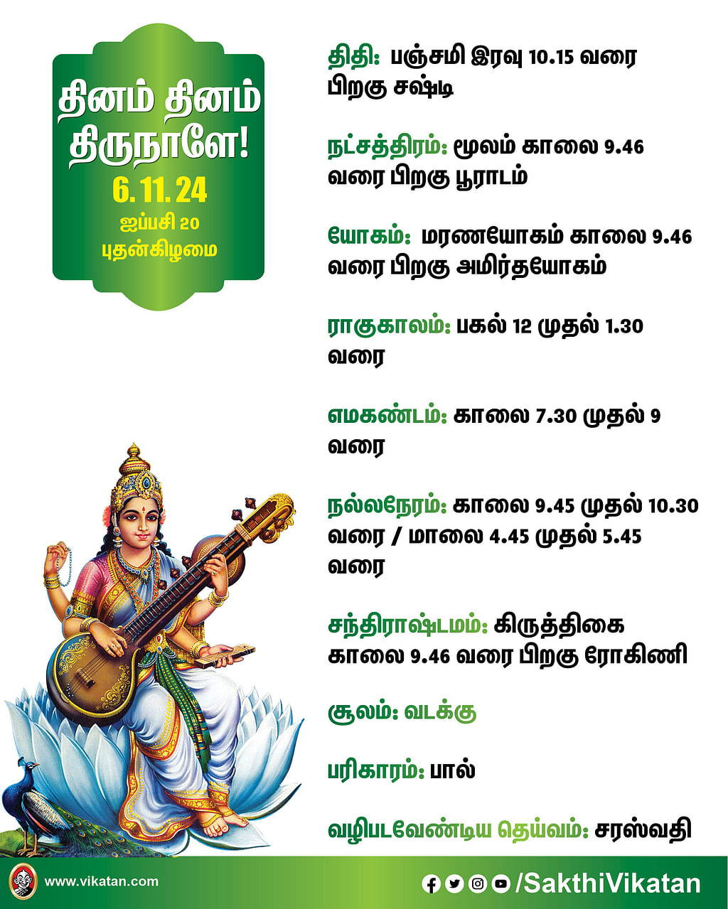 பஞ்சாங்கக் குறிப்புகள் – நவம்பர் 4 முதல் நவம்பர் 10 வரை #VikatanPhotoCards November 3, 2024 by விகடன் Source link