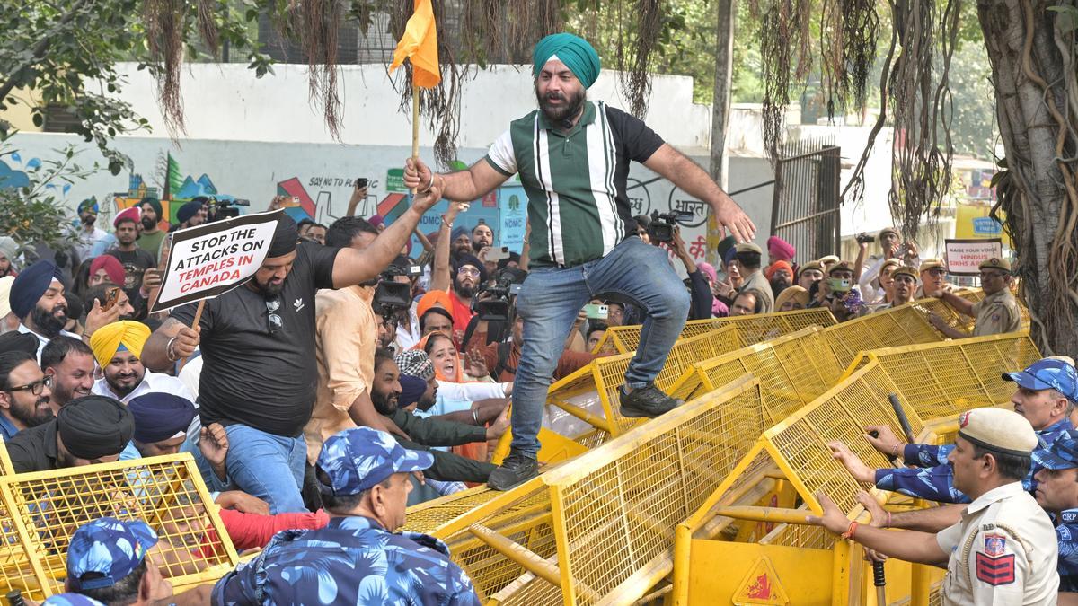 கனடா தூதரகம் முன்பு டெல்லியில் சீக்கியர்கள் போராட்டம்