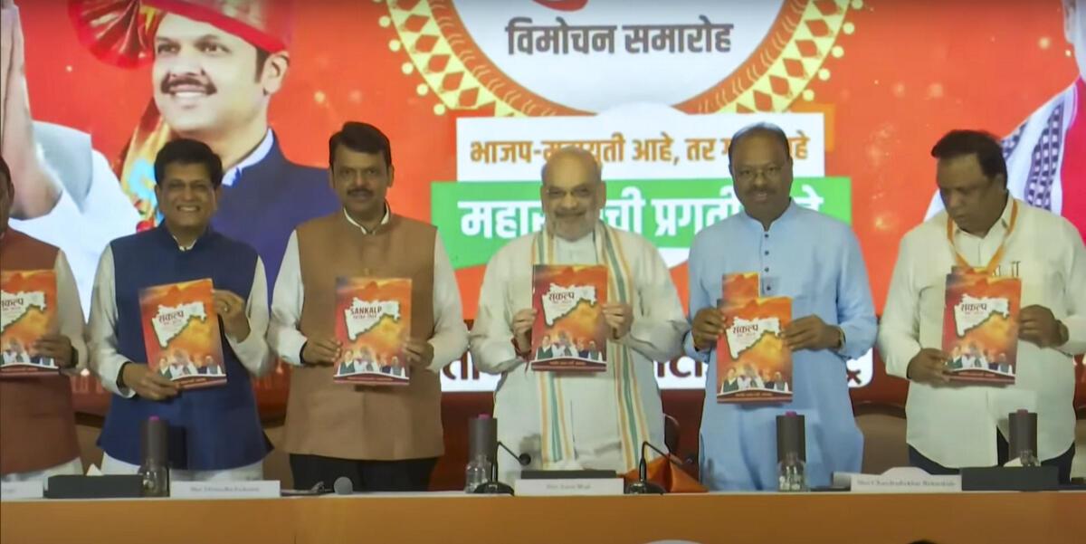 மும்பையில் நடந்த தேர்தல் அறிக்கை வெளியிட்டு நிகழ்ச்சியில் துணை முதல்வர் தேவேந்திர பட்நாவிஸ், மாநில பாஜக தலைவர் சந்திரசேகர பவன்குலே, மும்பை பாஜக தலைவர் ஆஷிஷ் ஷெலர், மத்திய அமைச்சர் பியூஷ் கோயல் உள்ளிட்ட மூத்த தலைவர்கள் கலந்து கெண்டனர். மகாராஷ்டிரா மாநில தேர்தலுக்கான பாஜகவின் தேர்தல் அறிக்கை குழுவுக்கு தலைமை தாங்கிய பாஜகவின் மூத்த அமைச்சர் சுதிர் முன்கந்திவார் கூறுகையில், “இந்த தேர்தல் அறிக்கை, மகாராஷ்டிர மக்களுக்காக அர்ப்பணிக்கப்பட்டுள்ளது. எங்களின் தலைமையின் கீழ் மாநிலத்தின் மொத்த உள்நாட்டு உற்பத்தி (ஜிஎஸ்டிபி) குறிப்பிடத்தக்க அளவில் உயர்ந்துள்ளது.