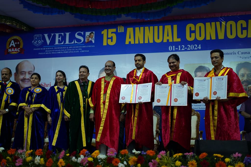 இந்த பட்டமளிப்பு விழாவில், நடிகரும், இயக்குநருமான எஸ்.ஜே சூர்யாவுக்கும், இந்திய பேட்மிட்டன் அணியின் தலைமை பயிற்சியாளர் புல்லேலா கோபிசந்த் மற்றும் நேச்சுரல்ஸ் சலூனின் தலைமை நிர்வாக அதிகாரி மற்றும் இணை இயக்குநரான சி.கே குமாரவேலுக்கும் கெளரவ டாக்டர் பட்டம் வழங்கப்பட்டது. மக்களவை சபாநாயகர் ஓம் பிர்லா இந்த கெளரவ டாக்டர் பட்டத்தை அவர்களுக்கு வழங்கினார். பட்டமளிப்பு விழாவில் கலந்து கொண்ட மக்களவை சபாநாயகர் ஓம் பிர்லா, “வேல்ஸ் பல்கலைக்கழகத்தை தமிழ்நாட்டின் மிகவும் மரியாதைக்குரிய கல்வி நிறுவனங்களில் ஒன்றாக வடிவமைப்பதில் டாக்டர் கணேஷின் பங்கு மிகப்பெரியது. பல்கலைக்கழகத்தில் பல சிறப்பு மையங்களை உருவாக்க வழிவகுத்த அவரது சிந்தனை மற்றும் அணுகுமுறைகளைக் கண்டு வியக்கிறேன். இன்று எனக்கு முன்னால் தன்னம்பிக்கையுடன் அமர்ந்துள்ள பட்டதாரிகளைப் பார்க்கும்போது, நான் மாணவர்களை மட்டுமல்ல, எதிர்காலத் தலைவர்களையும் பார்க்கிறேன்.