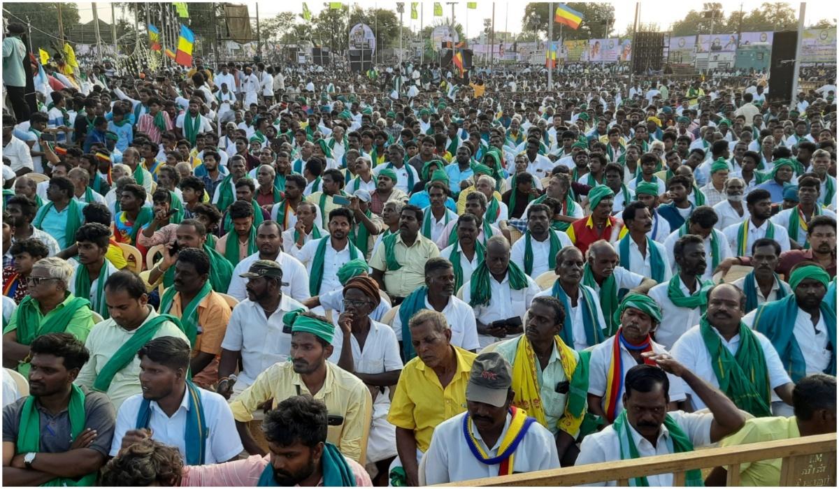 மாநாட்டில், நிறைவேற்றப்பட்ட தீர்மானங்கள்: தமிழக உழவர்களின் பிரச்சினைகளை ஆராயவும், தீர்வுகள் குறித்து பரிந்துரைக்க உயர்நீதிமன்ற நீதிபதி தலைமையில் குழு அமைக்க வேண்டும். விளை பொருட்களுக்கு கொள்முதல் விலை உத்தரவாதம் அளிக்கும் சட்டத்தை மத்திய அரசு நிறைவேற்ற வேண்டும். பாசனத் திட்டங்களை செயல்படுத்தத் தவறிய திமுக அரசுக்கு கண்டனம். வேளாண் நிதிநிலை அறிக்கையை பெயரளவில் இல்லாமல், வேளாண் வளர்ச்சிக்கு உதவும் ஆவணமாக தமிழக அரசு வெளியிட வேண்டும். இடுபொருள் மானியமாக ஏக்கருக்கு ரூ.10 ஆயிரம் வழங்க வேண்டும். மத்திய அரசின் உழவர் மூலதன மானியத்தின் அளவை ரூ.12 ஆயிரமாக உயர்த்த வேண்டும். நீர்நிலைகளை தாரைவார்க்கும் நில ஒருங்கிணைப்புச் சட்டத்தை திரும்ப பெற வேண்டும்.