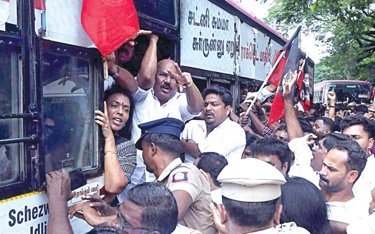 சென்னை அண்ணா பல்கலைக்கழக வளாகத்தில், பொறியியல் மாணவி பாலியல் வன்கொடுமை செய்யப்பட்ட சம்பவம் தமிழகம் முழுவதும் பெரும் அதிர்வலைகளை ஏற்படுத்தியுள்ளது. இதுதொடர்பாக கைது செய்யப்பட்ட ஞானசேகரன், போலீஸிடம் இருந்து தப்பிக்க முயன்றபோது, கை காலில் முறிவு ஏற்பட்டு மருத்துவமனையில் சேர்க்கப்பட்டுள்ளார். வன்கொடுமை சம்பவத்தை கண்டித்து சென்னையில் ஆர்ப்பாட்டம் நடத்திய அதிமுக, பாஜக கட்சியினர் 1,500 பேர் கைது செய்யப்பட்டனர்.