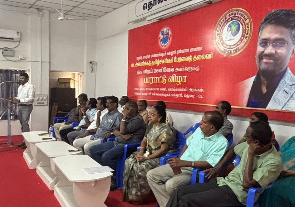 மதுரை காமராசர் பல்கலைக்கழக கல்லூரியில் முன்னாள் மாணவர்களுக்கு நடந்த பாராட்டு விழாவில் வட அமெரிக்க தமிழ்ச்சங்க பேரவைத் தலைவர் விஜய் மணிவேல் கௌரவிக்கப்பட்டார். துணை முதல்வர் முனைவர் பெரி.கபிலன் அறிமுக உரையாற்ற, கல்லூரி முதல்வர் முனைவர் ம.புவனேஸ்வரன் தலைமை தாங்கி பேசினார்.
