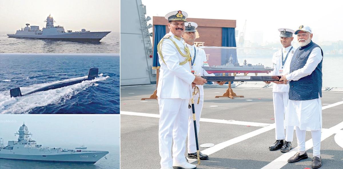 நீண்ட கடற்பயணம், கடல் வணிகள், கடற்படை மற்றும் கப்பல் கட்டும் தொழில் ஆகியவற்றில் இந்தியாவுக்கு வளமான வரலாறு உள்ளது. தற்போது உலகில் உள்ள கடற்சார் சக்தியில் இந்தியா முக்கிய நாடாக உருவெடுத்து வருகிறது. சோழ வம்சத்தின் சக்திவாய்ந்த கடற்படைக்கு அர்ப்பணிக்கப்பட்ட ஐஎன்எஸ் நீல்கிரி, குஜராத் துறைமுகங்கள் இந்தியாவை மேற்கு ஆசியாவுடன் இணைத்ததை நினைவூட்டும் ஐஎன்எஸ் சூரத், பிரான்ஸ் நிறுவனத்துடன் இணைந்து உள்நாட்டில் தயாரிக்கப்பட்ட நீர்மூழ்கி கப்பல் ஐஎன்எஸ் வக்ஷீர் ஆகிய 3 போர்க் கப்பல்களும் இந்தியாவின் பாதுகாப்பையும், முன்னேற்றத்தையும் மேம்படுத்தும்.