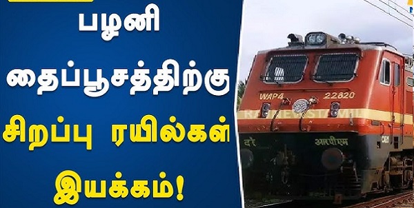 மதுரை தெற்கு ரயில்வே தைப்பூச திருவிழாவையொட்டி மதுரை – பழனி இடையே சிறப்பு ரயில் இயக்க உள்ளது. தெற்கு ரயில்வே மதுரை கோட்டம், ”பழனி தண்டாயுதபாணி கோவில் தைப்பூசத் திருவிழாவை முன்னிட்டு பயணிகள் வசதிக்காக மதுரை, பழனி இடையே சிறப்பு ரயில் இயக்கப்பட உள்ளது. இதன்படி மதுரை, பழனி இடையே பிப்ரவரி 11-02-2025 ( செவ்வாய்) மற்றும் 12-02-2025 (புதன்கிழமை) ஆகிய நாட்களில் சிறப்பு ரயில் இயக்கப்பட உள்ளது. மதுரை – பழனி இடையே தைப்பூச சிறப்பு […]