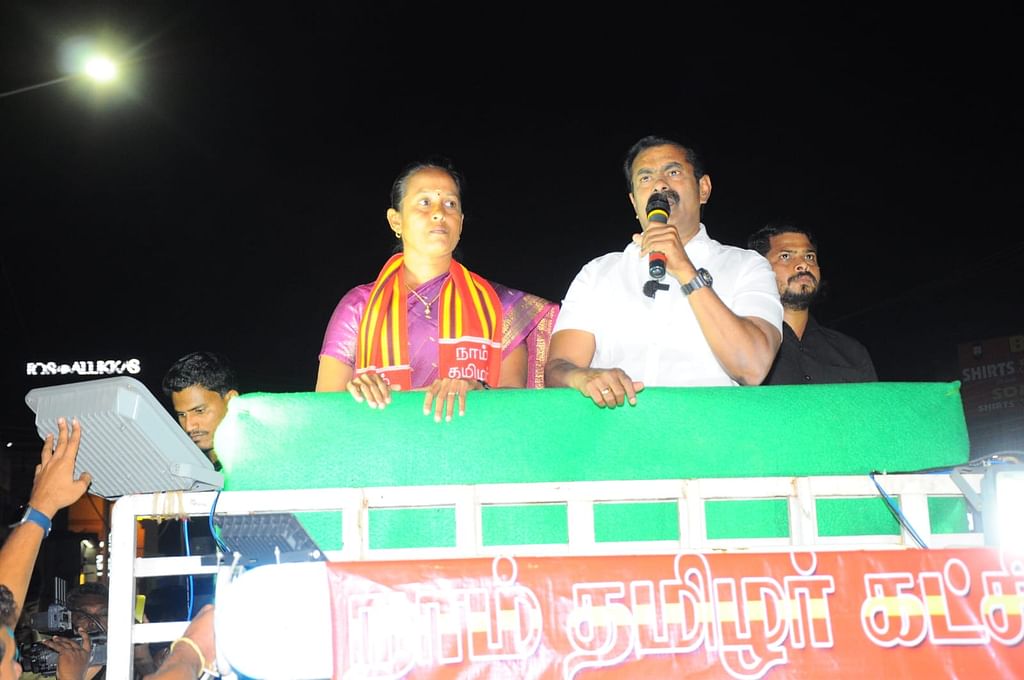 அதுமட்டுமில்லாமல், திமுக தரப்பிலும் இருந்தும் பெரியாரிய அமைப்புகள் தரப்பில் இருந்தும் அண்ணனை பிரசாரம் செய்யவிடாமல் எதிர்ப்புகள் இருக்கும் என எதிர்பார்த்தோம். அப்படி இருந்தால் பெரியார் குறித்து கடுமையான விமர்சனங்களை முன் வைக்க திட்டமிட்டிருந்தோம். ஆனால், அதுவும் நடக்கவில்லை என்பதால், இந்தத் தொகுதியில் உள்ள பிரச்னை, திமுக ஆட்சியின் அவலங்களை மட்டும் அண்ணன் பேசிவிட்டுச் சென்றார்” என்றனர்.