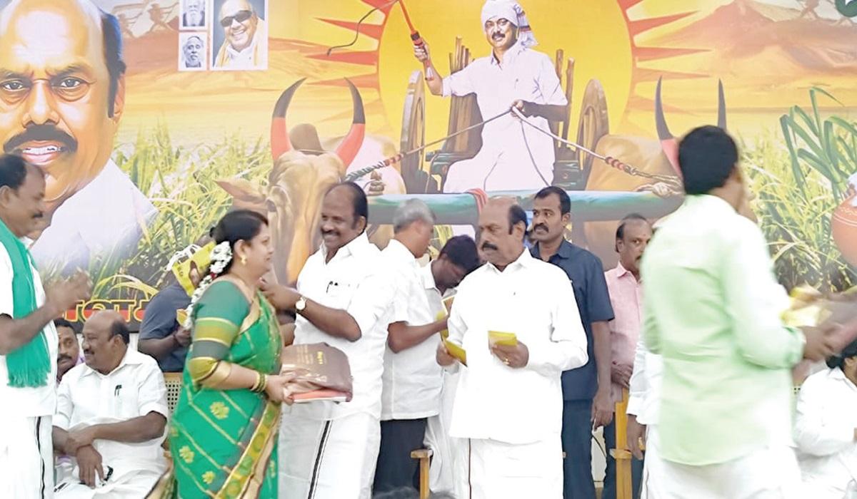 அதுவே மாவட்ட மகளிரணி அமைப்பாளரான கலாவுக்கும் வழங்கப்பட்ட பையில் ரூ.10 ஆயிரம் தான் இருந்துள்ளது. மற்றபடி மகளிரணியின் ஒன்றிய, நகர, கிளை பொறுப்பாளர்களுக்கு பொங்கல் தொகுப்பு மட்டும் தான் கைக்குக் கிடைத்ததாம். இந்த ‘அன்பளிப்பு’ விவகாரம் மாவட்ட மகளிரணி நிர்வாகிகள் மத்தியில் இப்போது பெரும் விவாதமாக ஓடிக்கொண்டிருக்கிறது.