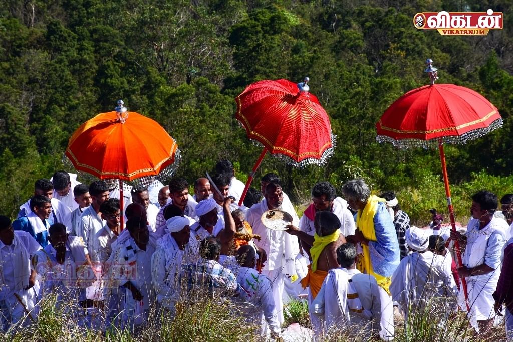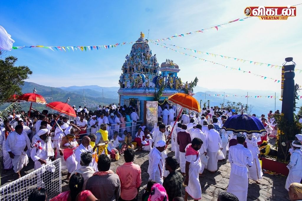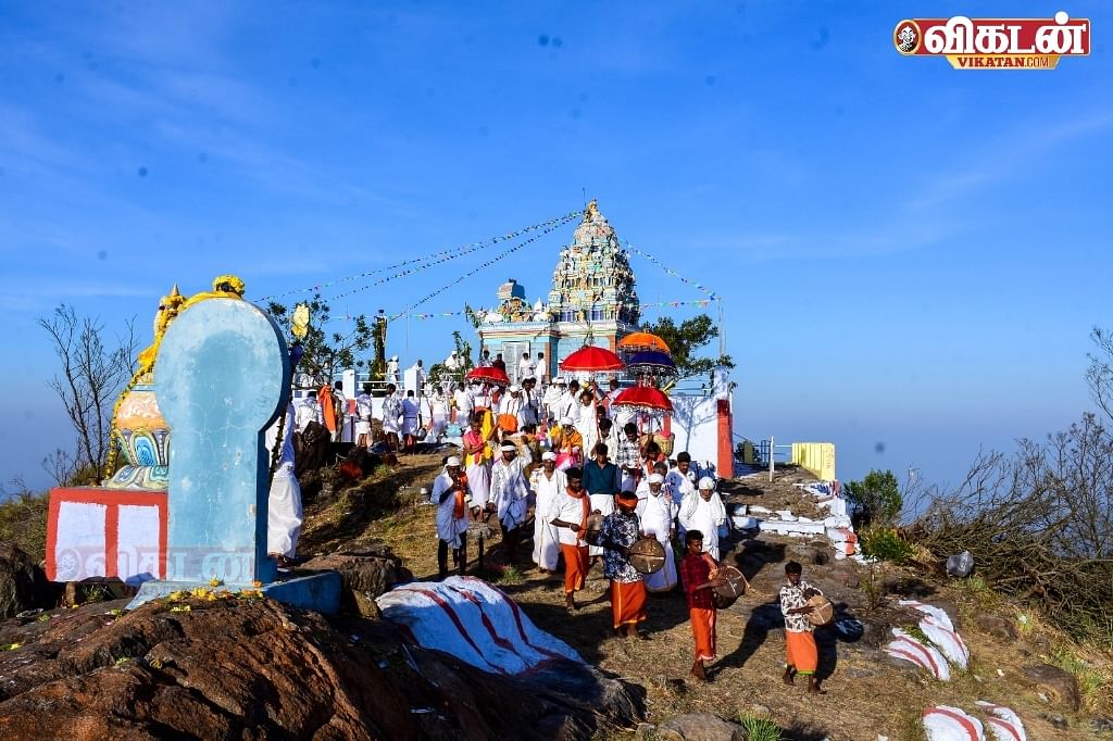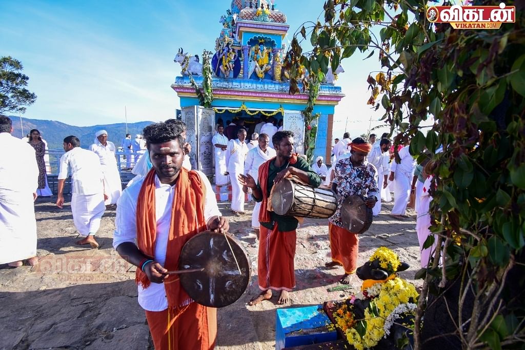 இருளர் பழங்குடிகள் மங்கள இசையில், பாரம்பரிய படுகர் இன மக்களின் வண்ணக் குடை ஊர்வலத்துடன் அடிவாரத்திலிருந்து சுமார் 600 படிக்கட்டுகள் நடந்து மலை உச்ச கோவிலுக்கு அழைத்துவரப்பட்ட ஈஸ்வரன். ஆடலும் பாடலுமாய் ஈசனைத் தரிசித்த பக்தகோடிகள்!