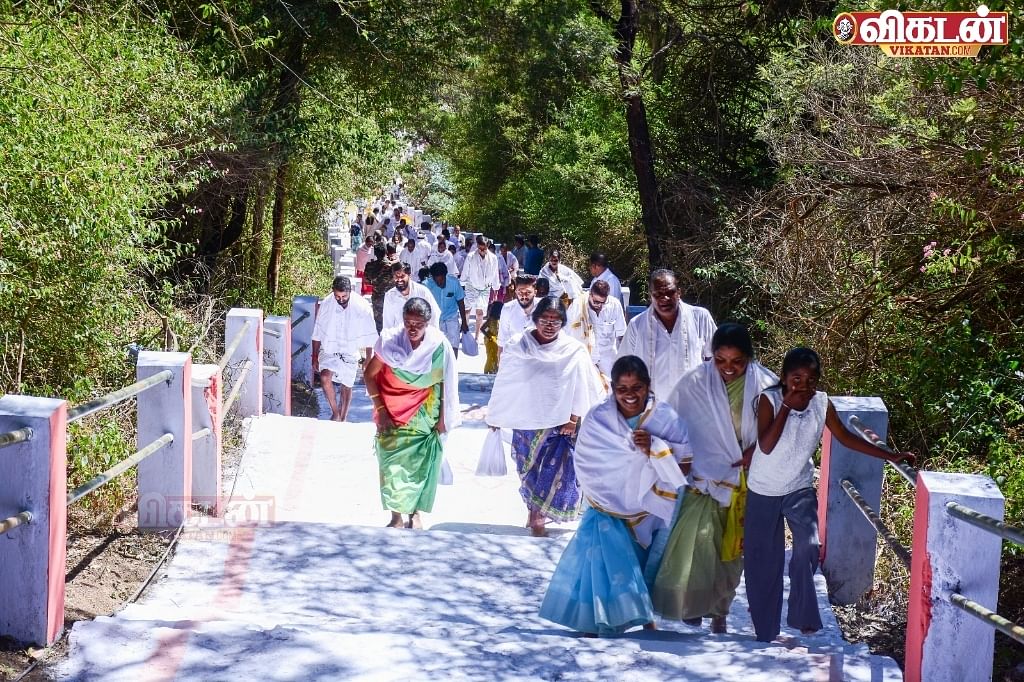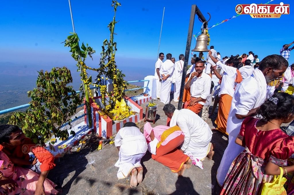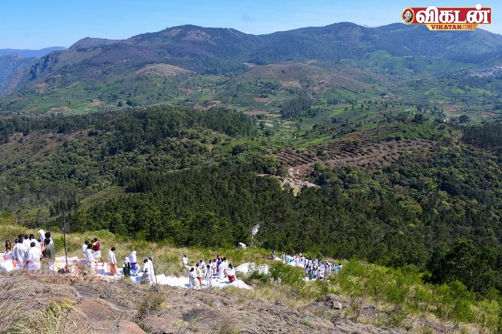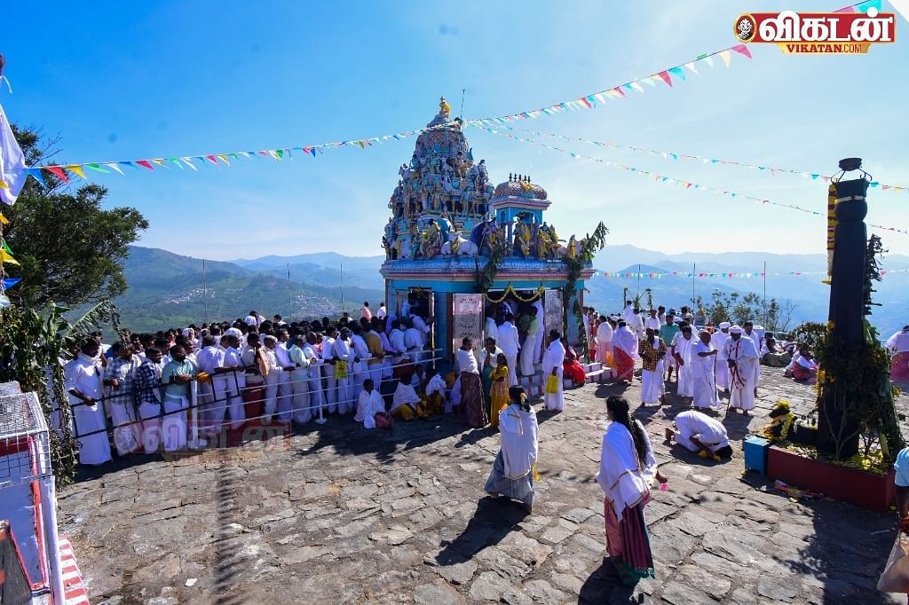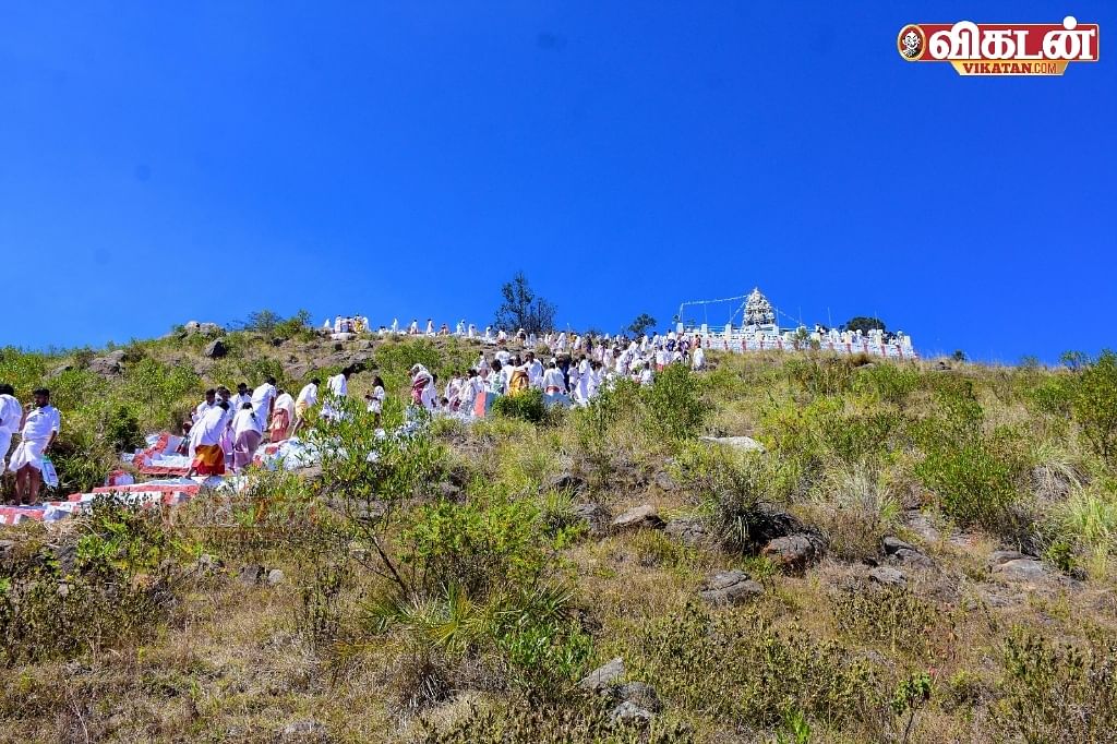 இருளர் பழங்குடிகள் மங்கள இசையில், பாரம்பரிய படுகர் இன மக்களின் வண்ணக் குடை ஊர்வலத்துடன் அடிவாரத்திலிருந்து சுமார் 600 படிக்கட்டுகள் நடந்து மலை உச்ச கோவிலுக்கு அழைத்துவரப்பட்ட ஈஸ்வரன். ஆடலும் பாடலுமாய் ஈசனைத் தரிசித்த பக்தகோடிகள்!