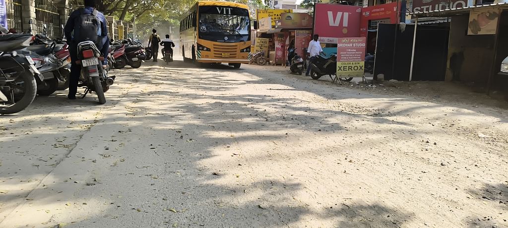 வேலூர் மாவட்டத்தில் காட்பாடி பகுதியில் விஐடி பல்கலைக்கழகத்தின் மெயின் பிளாக் கட்டடங்கள் அமைந்துள்ளன. இந்த மெயின் பிளாக் கட்டடத்தின் அருகிலேயே இருக்கும் அரசு உள் விளையாட்டு மைதானத்திற்குச் செல்லும் சாலையானது மிகவும் சேதம் அடைந்துள்ளது. இந்த சாலையில் பயணிக்க முடியாதபடி பள்ளங்களுடன் மண் சாலை போன்று காட்சியளிக்கின்றது.