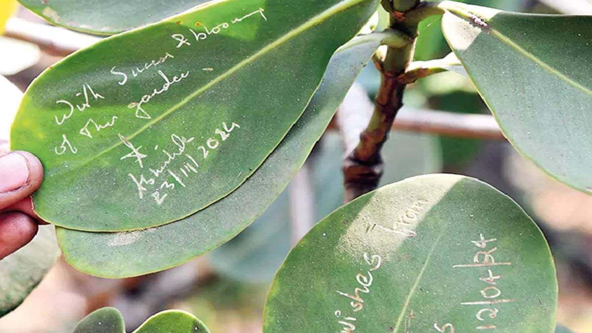 இந்த செடியின் இலைகள் மிகவும் தடிமனாக உள்ளன. இதில் காதலர்கள் தங்களின் பெயர்களை நகத்தால் எழுதி வைக்கின்றனர். இந்த இலை உதிரும் வரை கூட இதன் மீதான எழுத்துகள் அழியாமல் இருக்கும். இதுவே இதன் தனிச் சிறப்பாகும். ஆதலால் இதனை ‘ஆட்டோகிராப் செடி’ என்றும் அழைக்கின்றனர்.