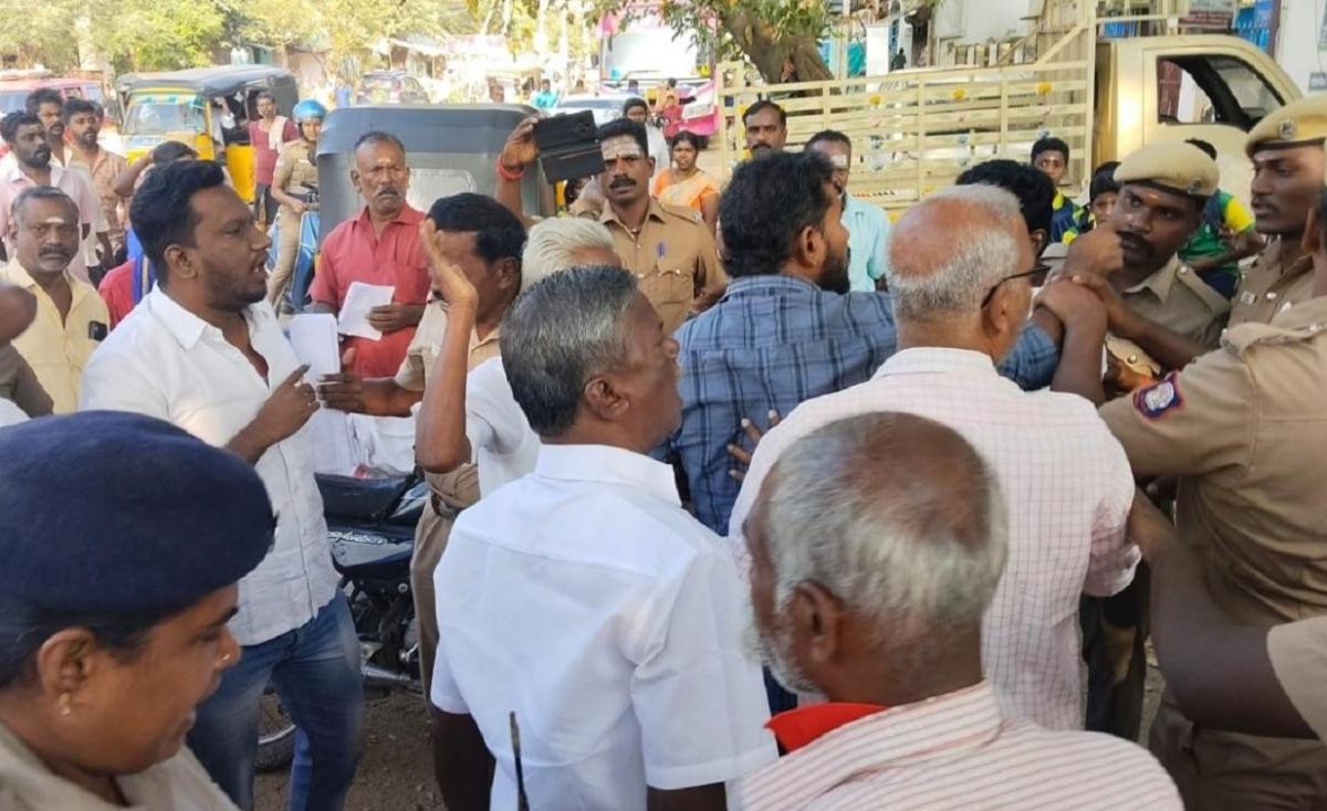 அப்போது அவர்களுக்குள் வாக்குவாதமும் ஏற்பட்டது. இதனிடையே பொதுமக்கள், பக்தர்கள் மற்றும் போக்குவரத்துக்கு இடையூறு ஏற்படுத்தியது, மத பிரச்சினையை தூண்டும் வகையில் செயல்பட்டது உட்பட 8 பிரிவுகளில் தியாகராஜன் உள்ளிட்ட 30-க்கும் மேற்பட்டோர் மீது திருப்பரங்குன்றம் போலீஸார் வழக்கு பதிவு செய்தனர்.